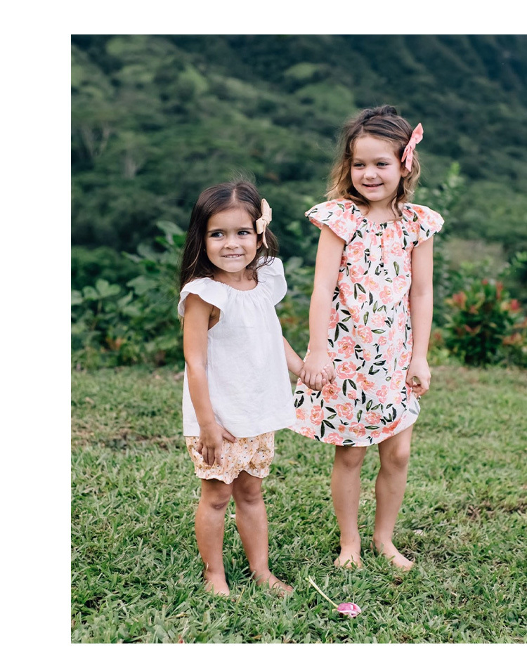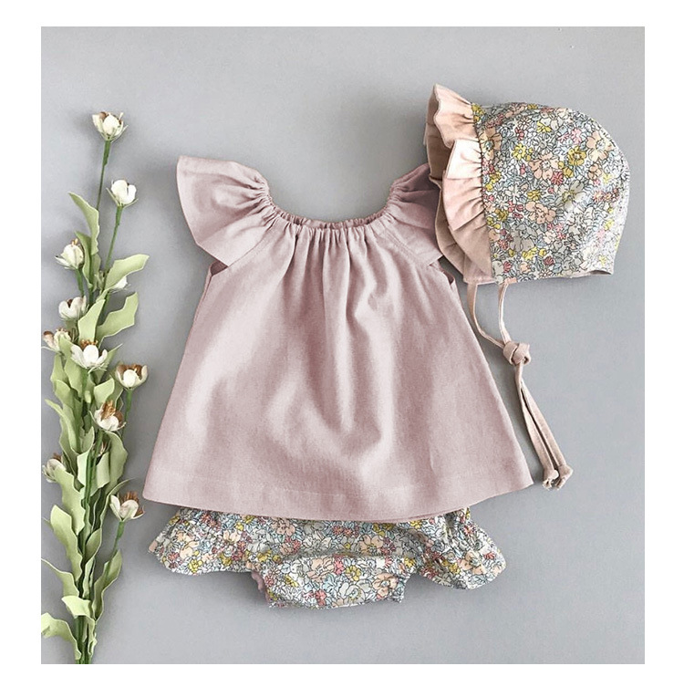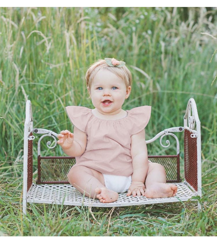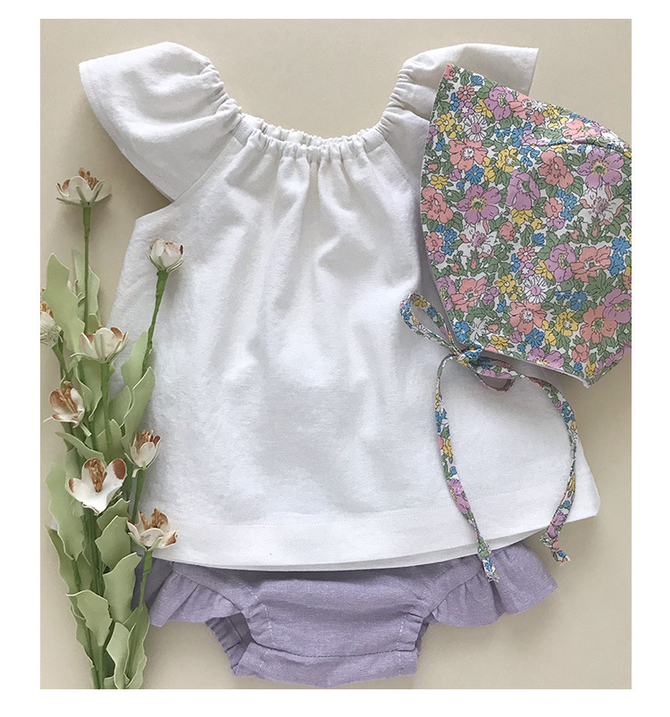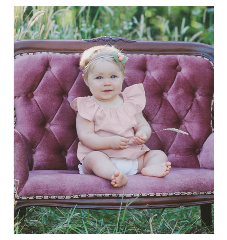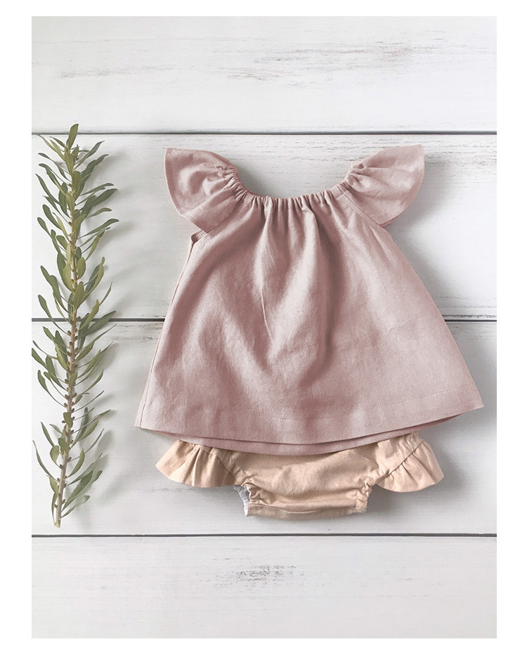 女の子ベスト綿とリネントップス小さなフライングスリーブ子供夏服ニッチデザインラウンドネック女の赤ちゃんかわいい半袖Tシャツ
