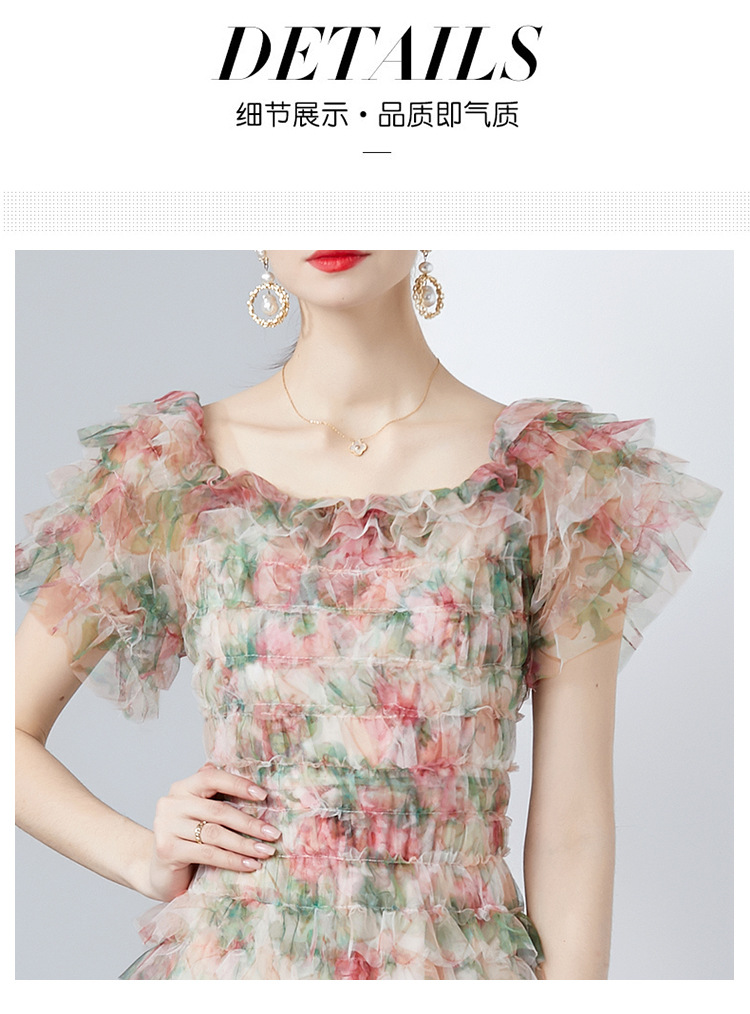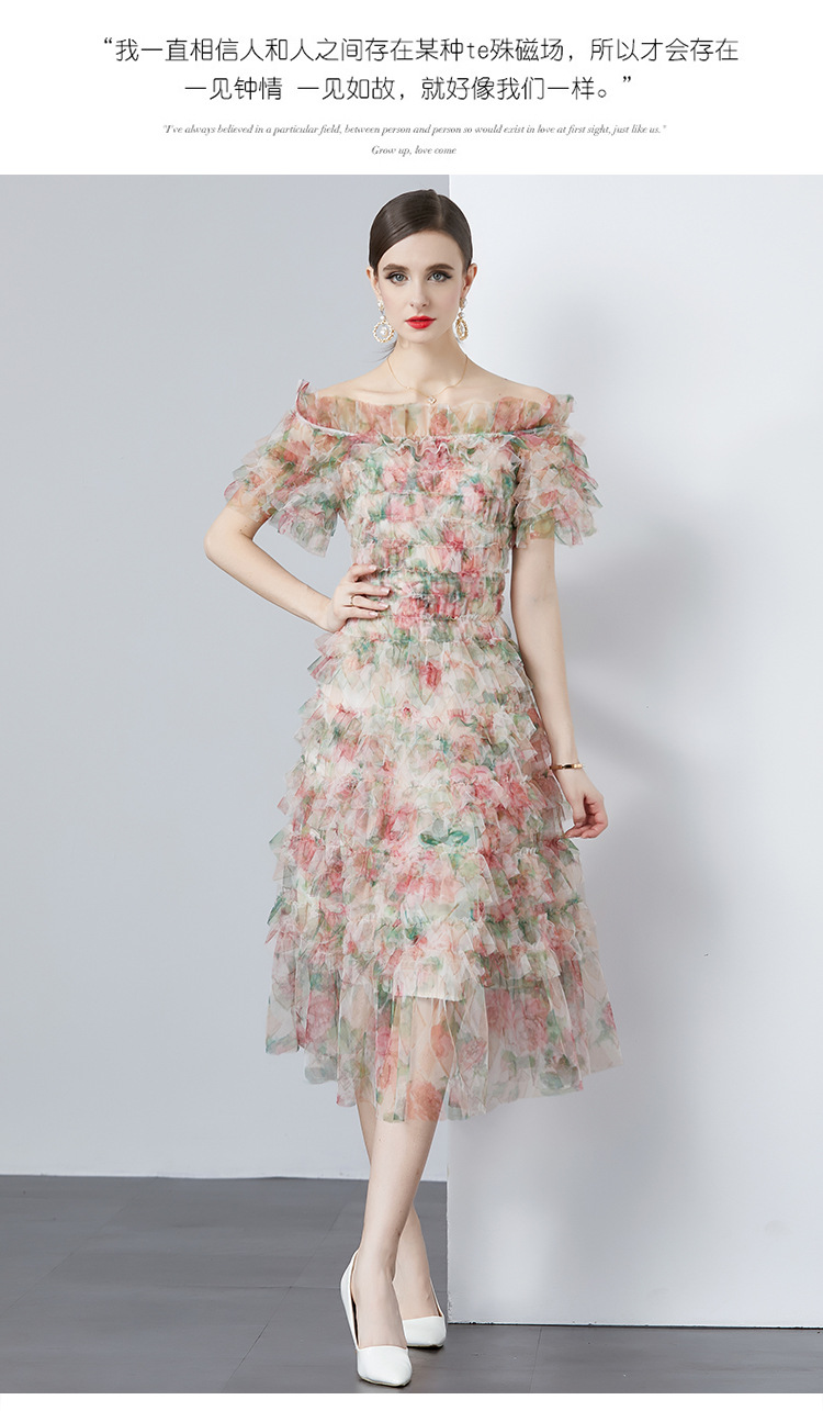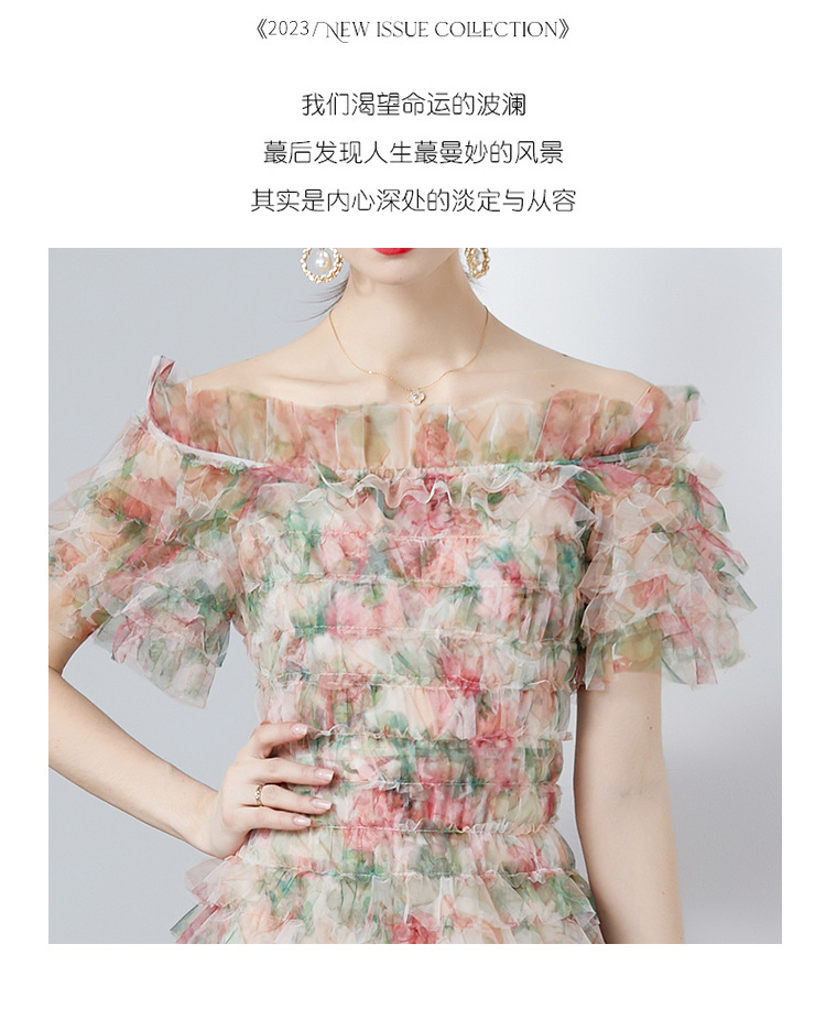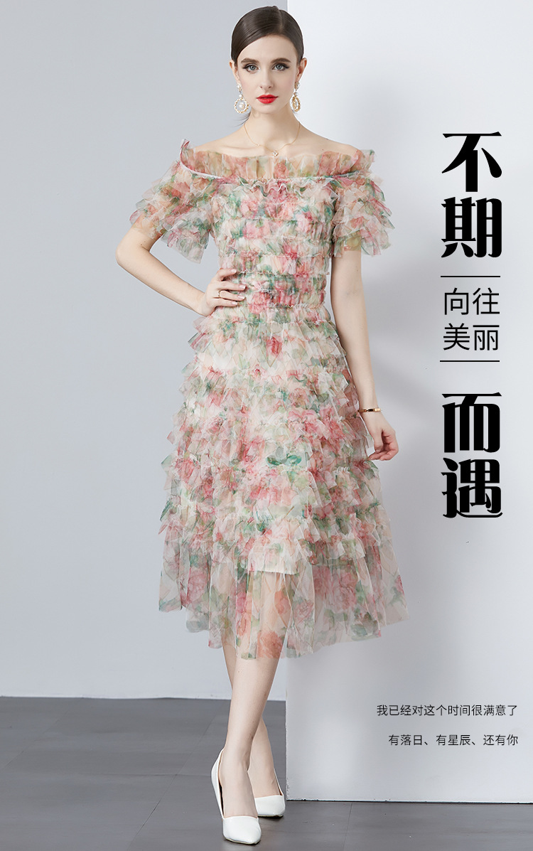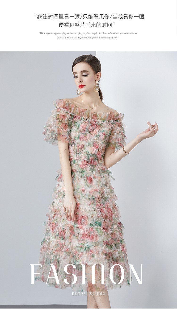 フランスの仙人の気質の砕花の長いスカートの高級感はやせています。