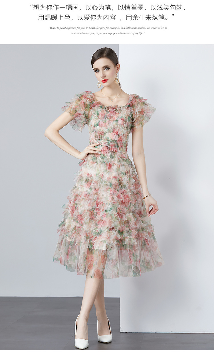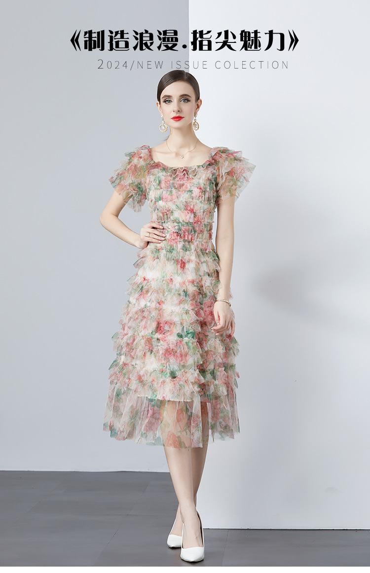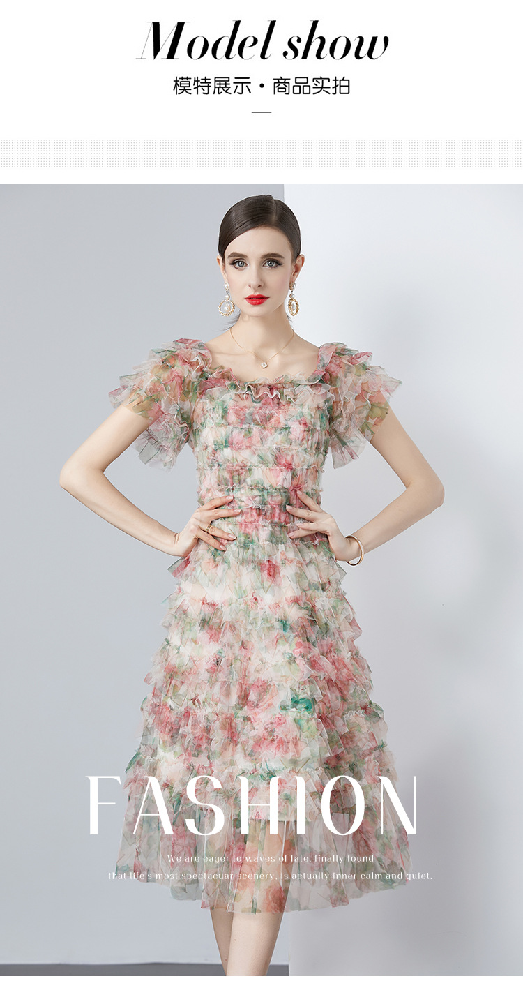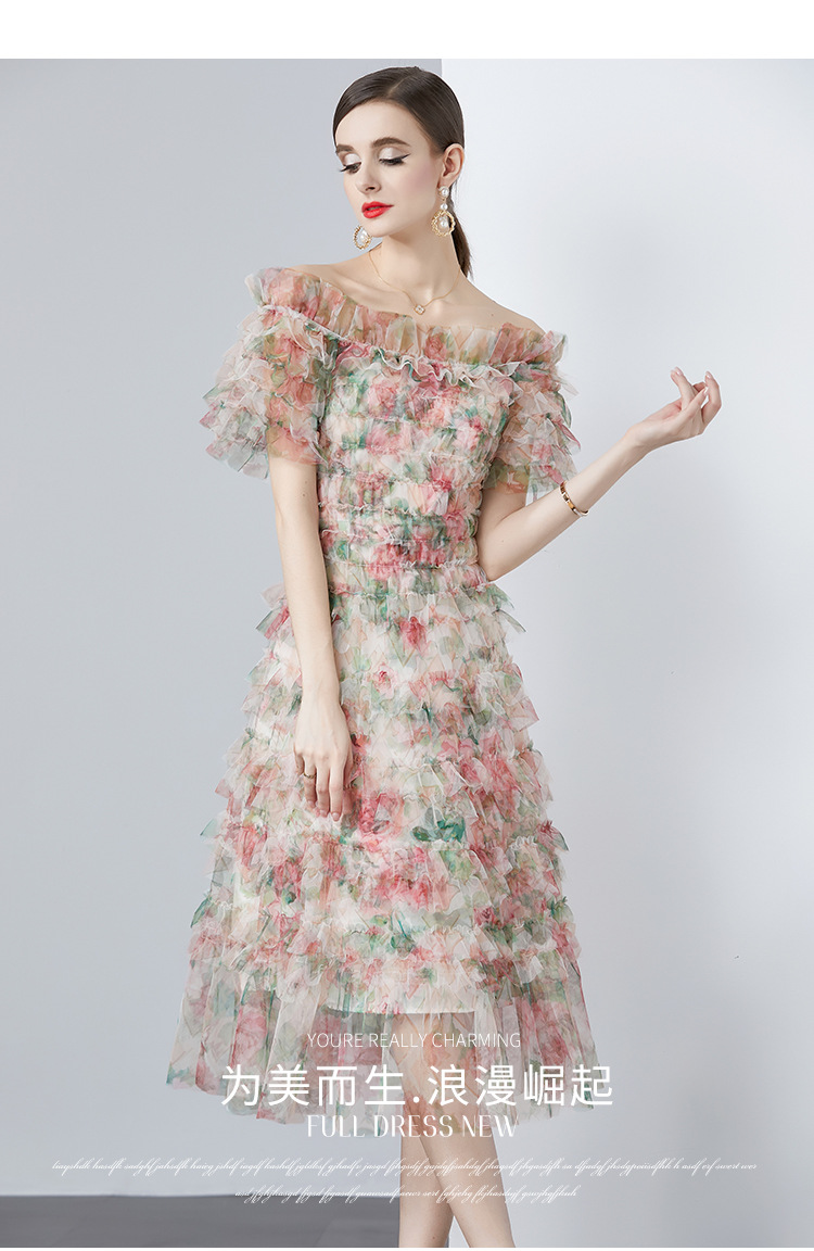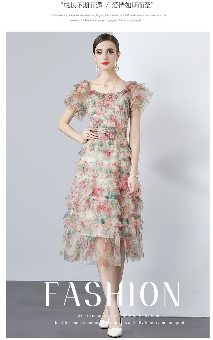 フランスの仙人の気質の砕花の長いスカートの高級感はやせています。