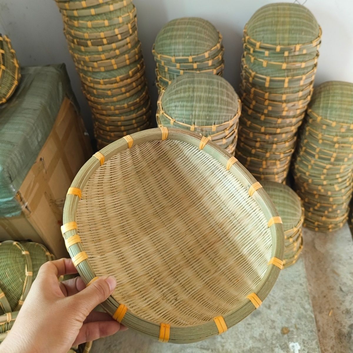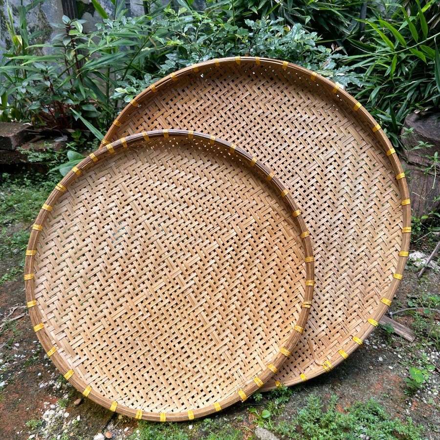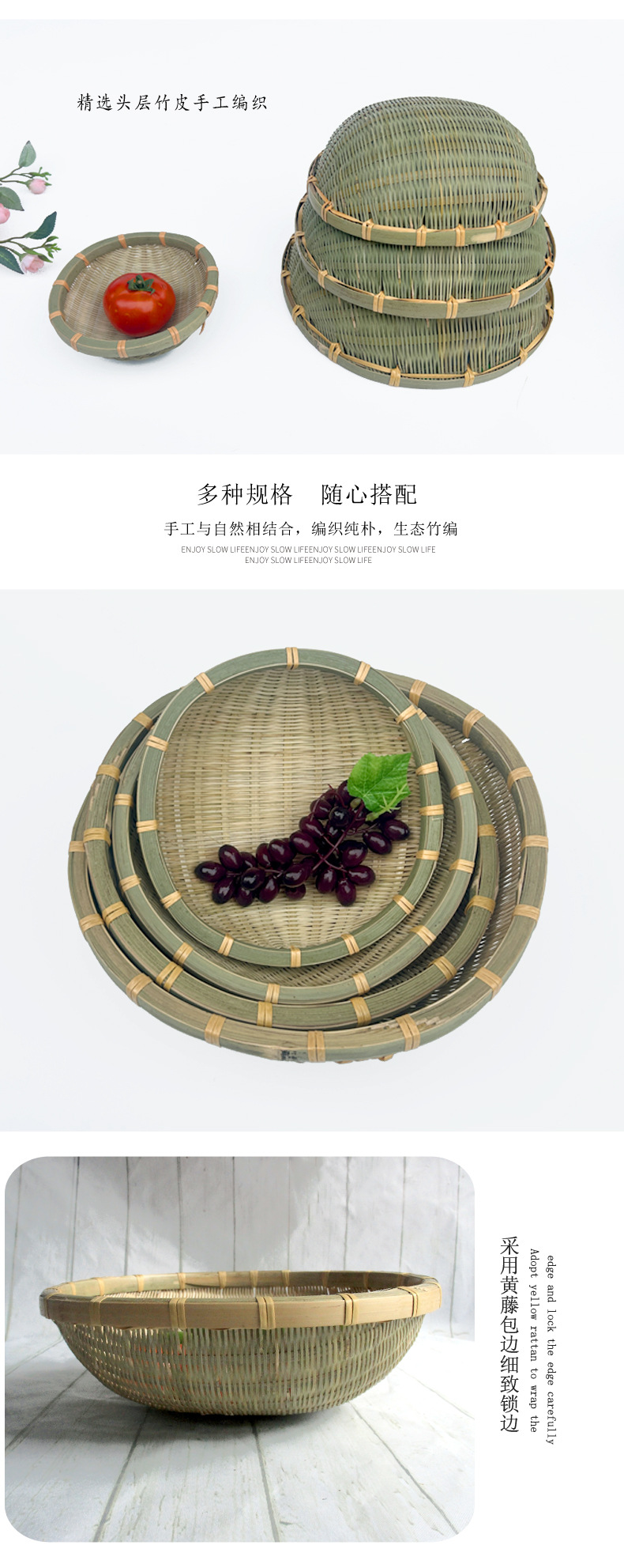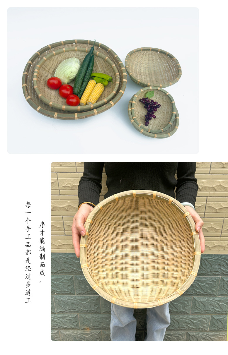 手工编织竹簸箕圆形竹编晒盘有孔晾晒竹匾农家水果篮竹制品