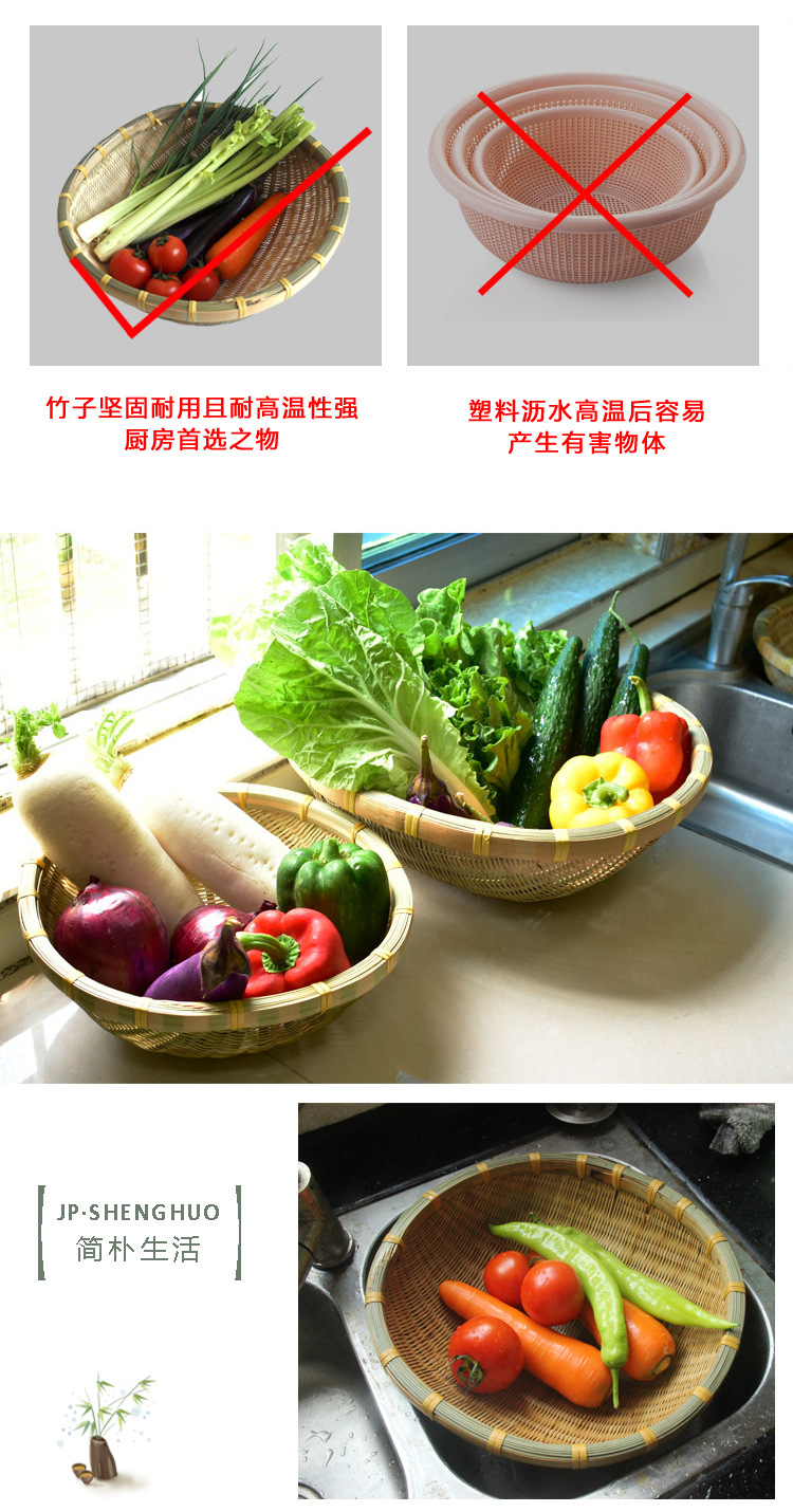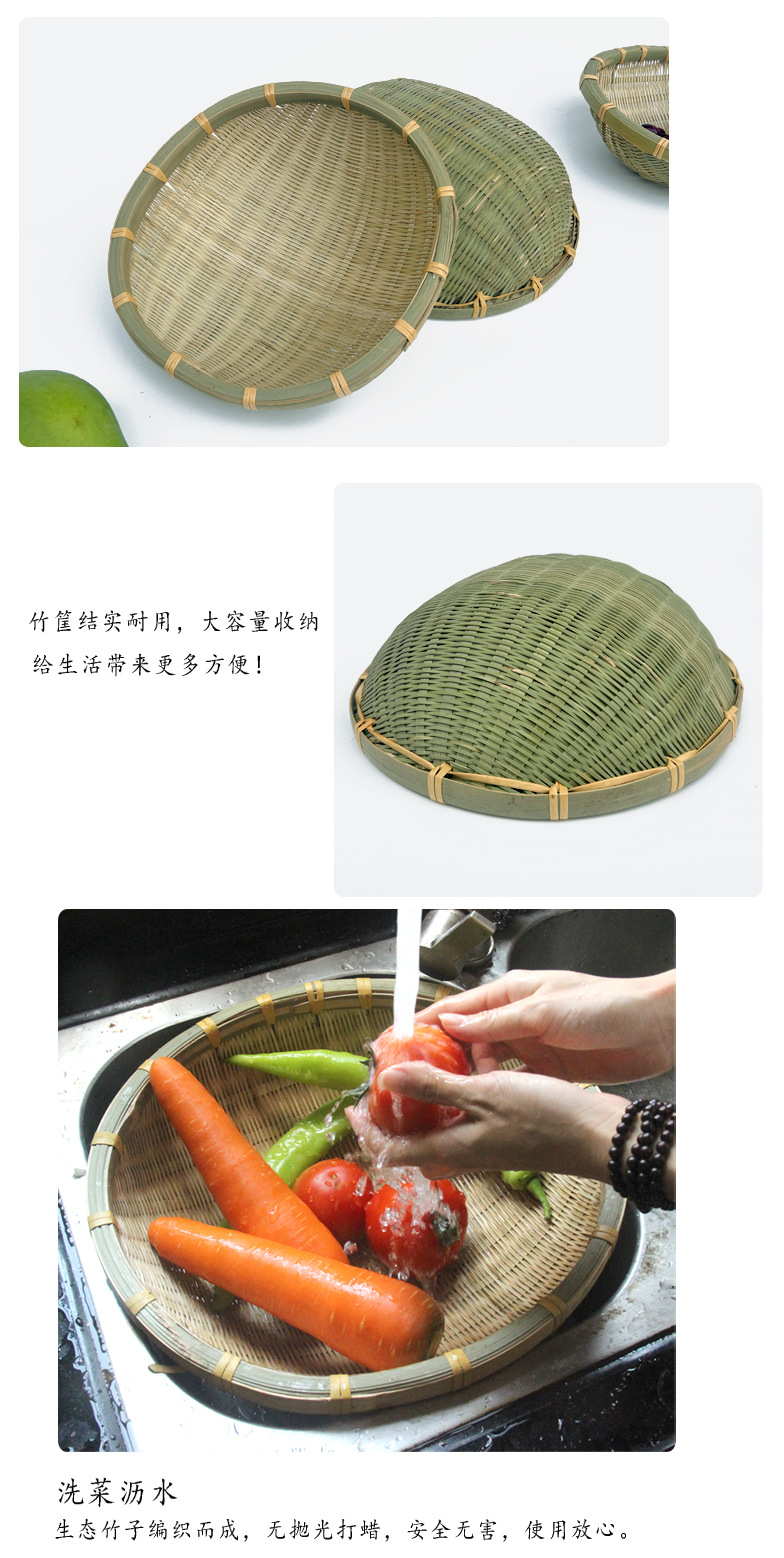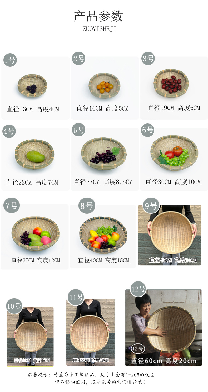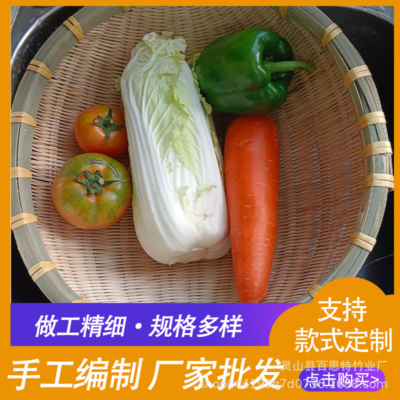 竹编竹制品圆簸箕洗菜沥水筐收纳篮篮子熟食馒头筐竹淘米箩田园风