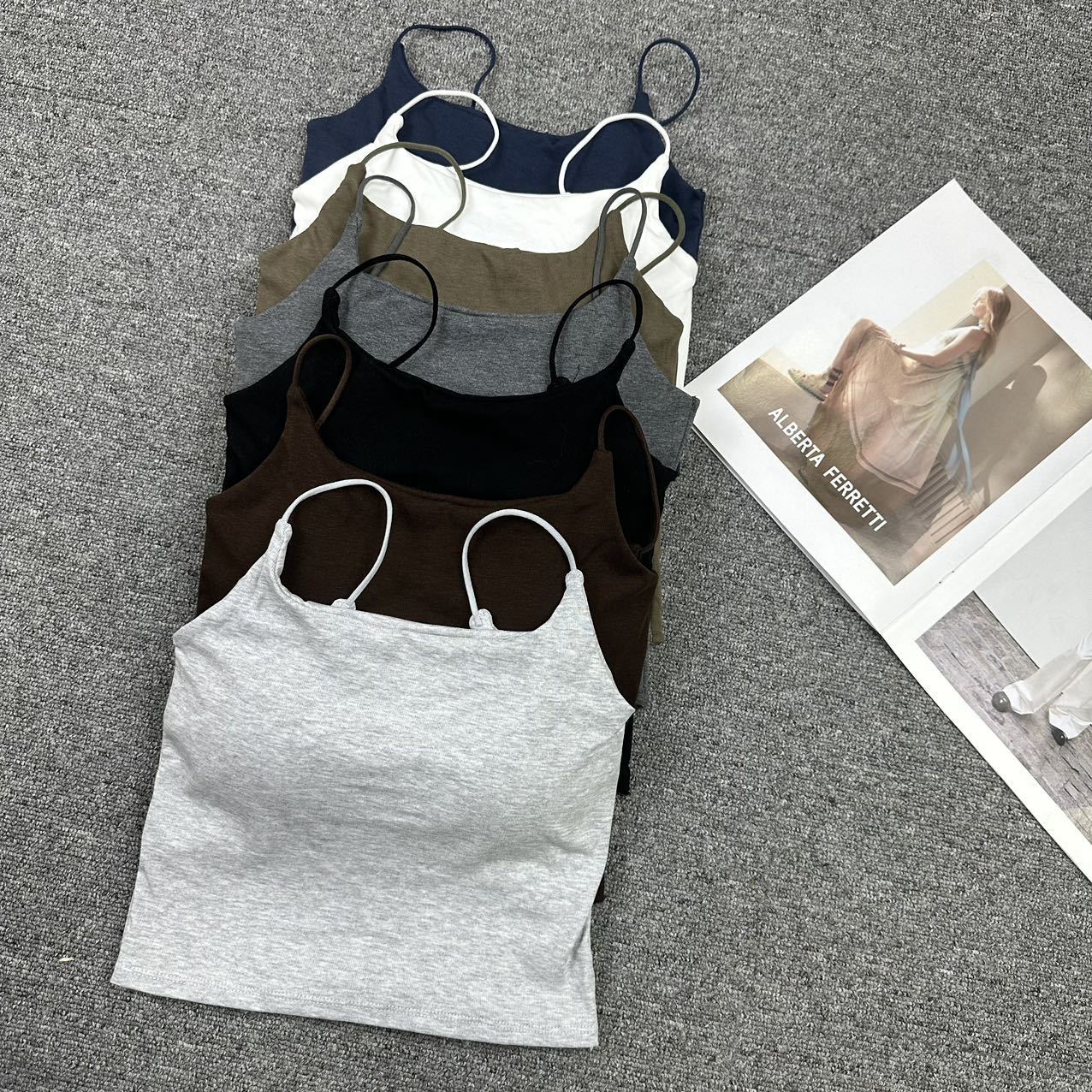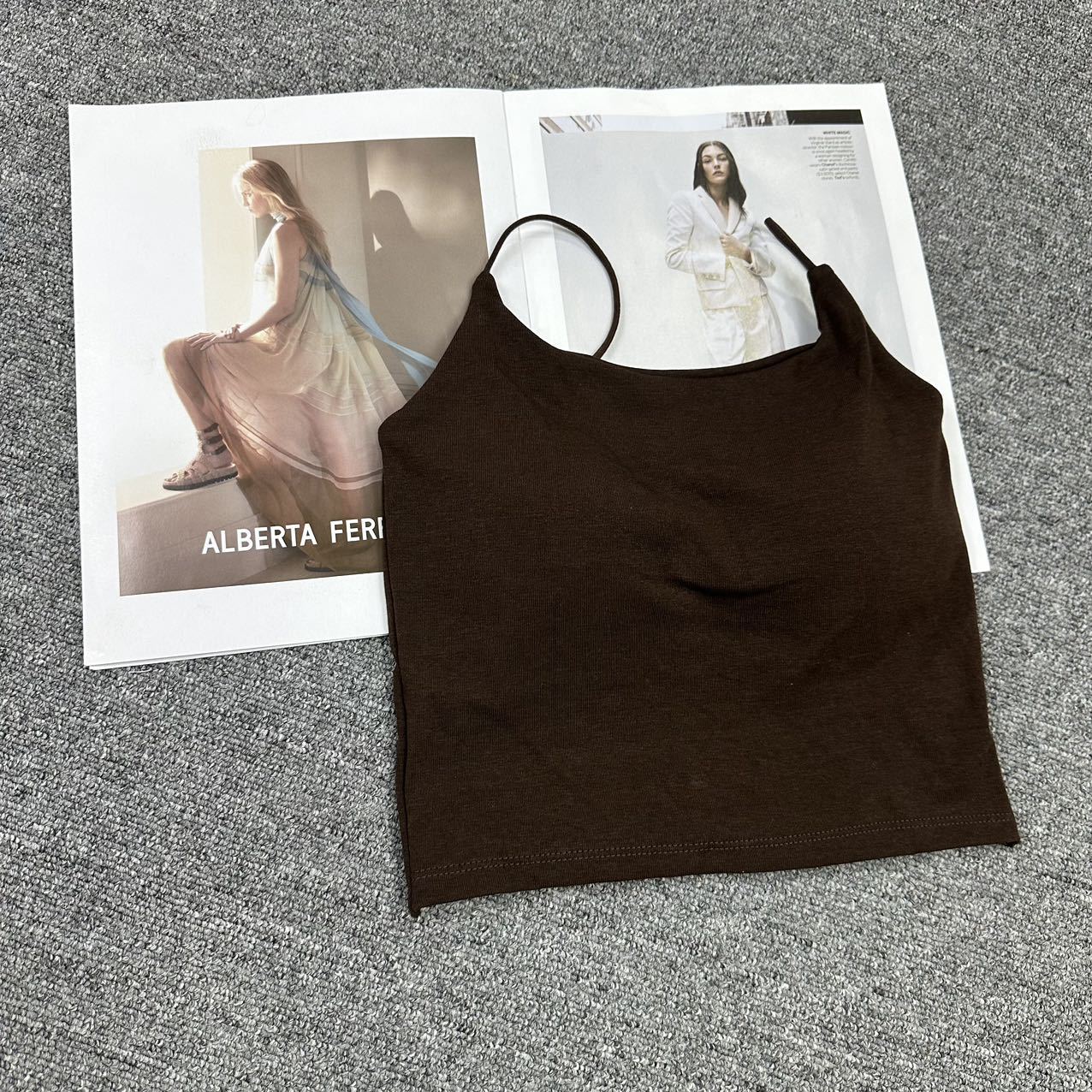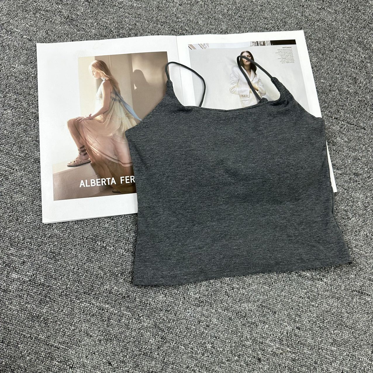 2025年新作セクシーホルターネックキャミソール、胸パッド付き固定カップデザイン、薄型ダブルショルダーストラップ、美背、万能、女性用、夏