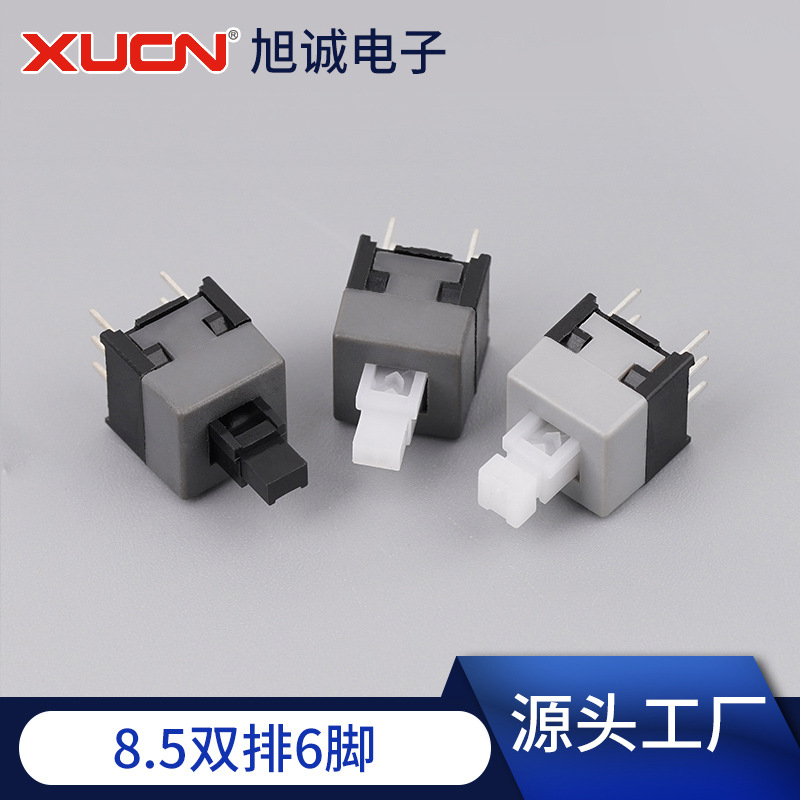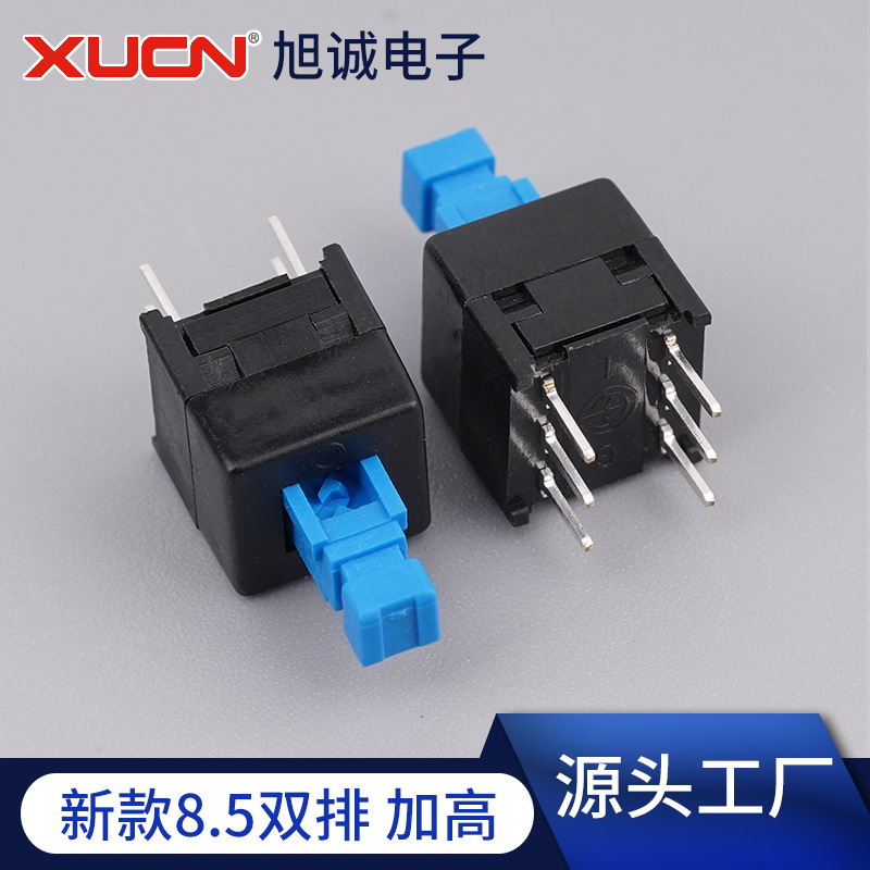 新型8.5セルフロックスイッチ8.5*8.5高さ6脚二列有声無錠耐温無錠スイッチ青白ヘッド