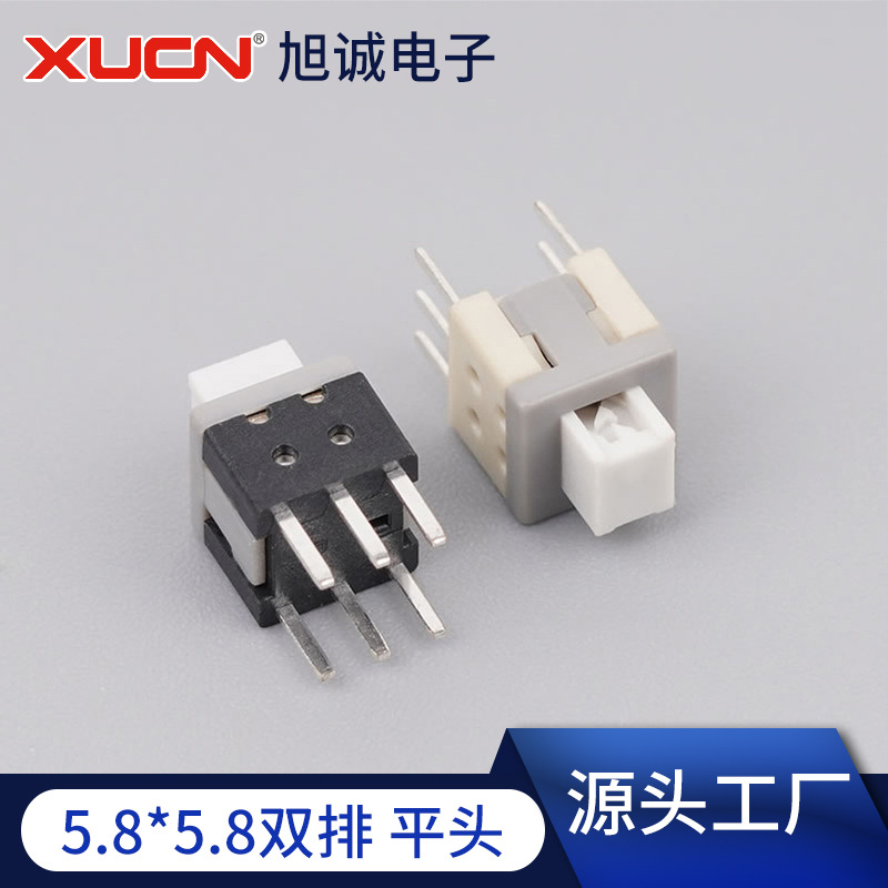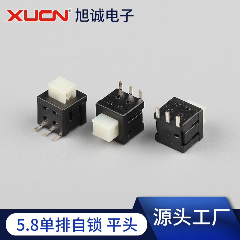セルフロック無錠スイッチ5.8*5.8タッチパワーボタンスイッチ白頭平頭単列3脚ボタン