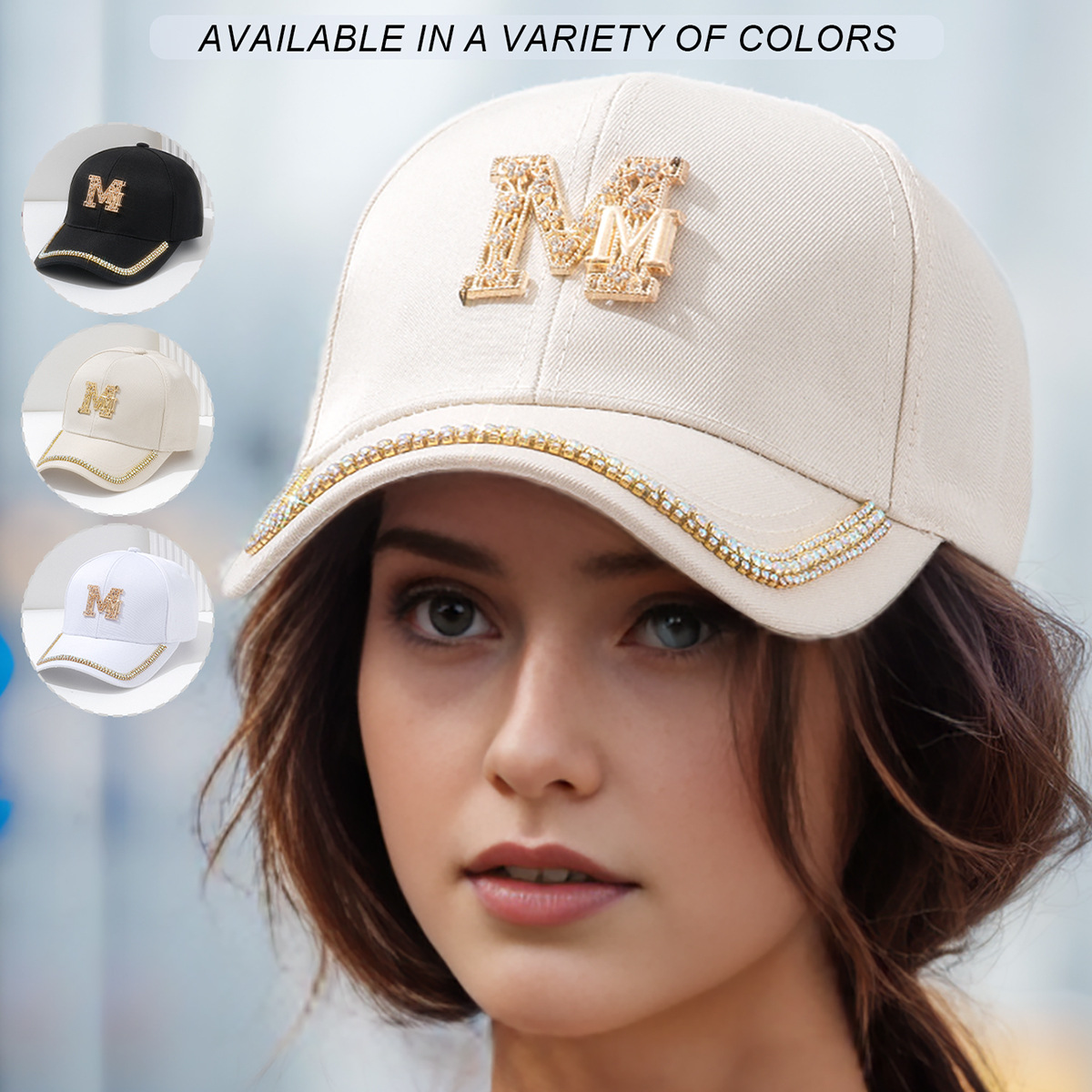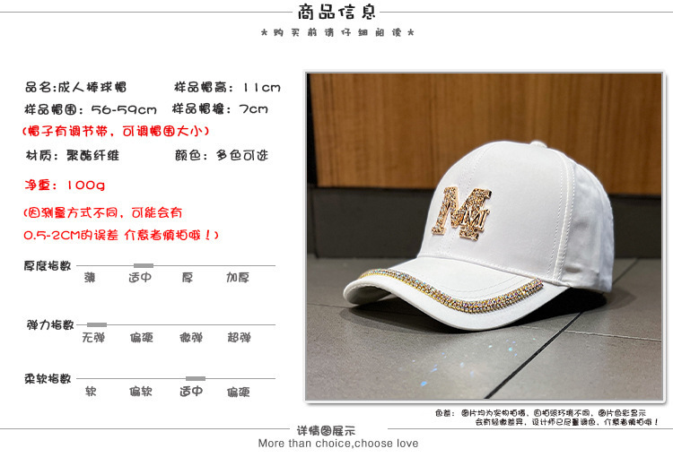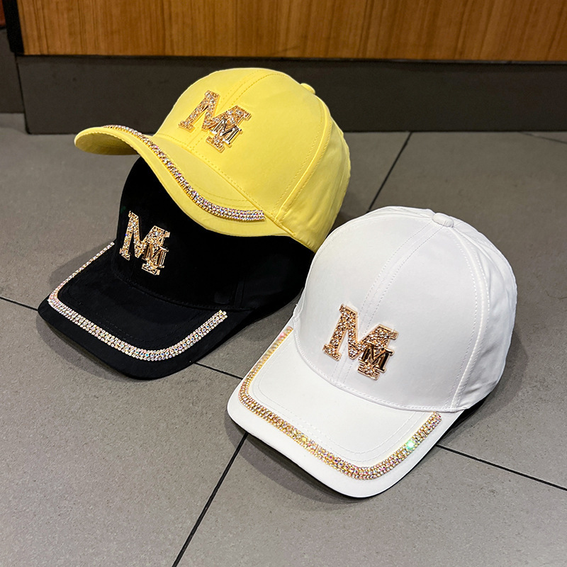 纯棉帽子女韩版网红鸭舌帽ins潮牌春夏天休闲M字母水钻遮阳棒球帽