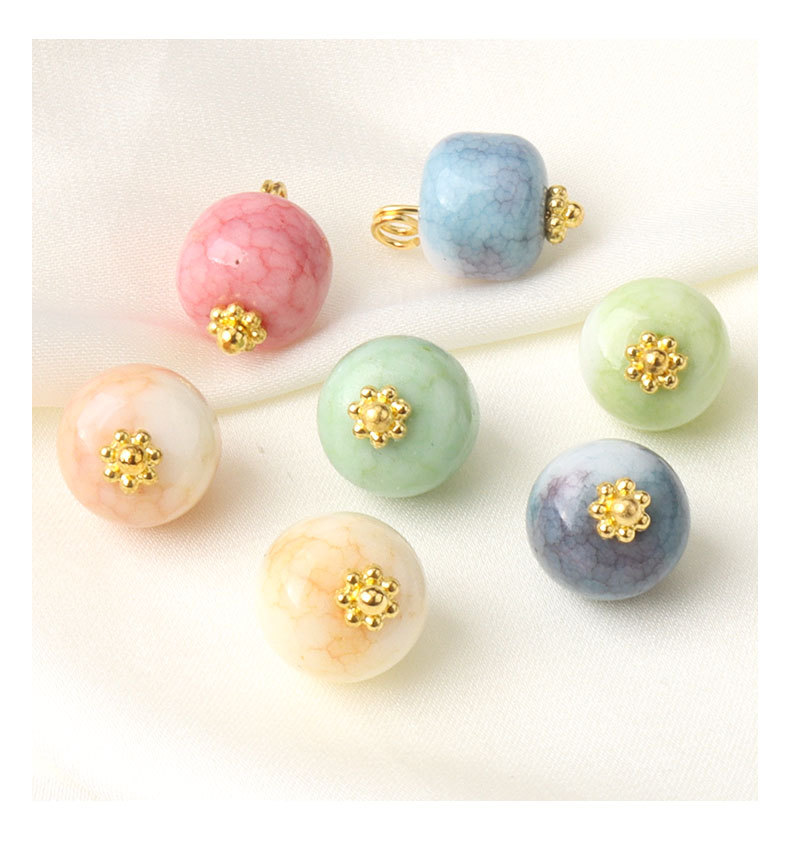 旗袍纽头油画风中式纽扣彩色琉璃珠圆珠扣金属花托复古马甲开衫扣