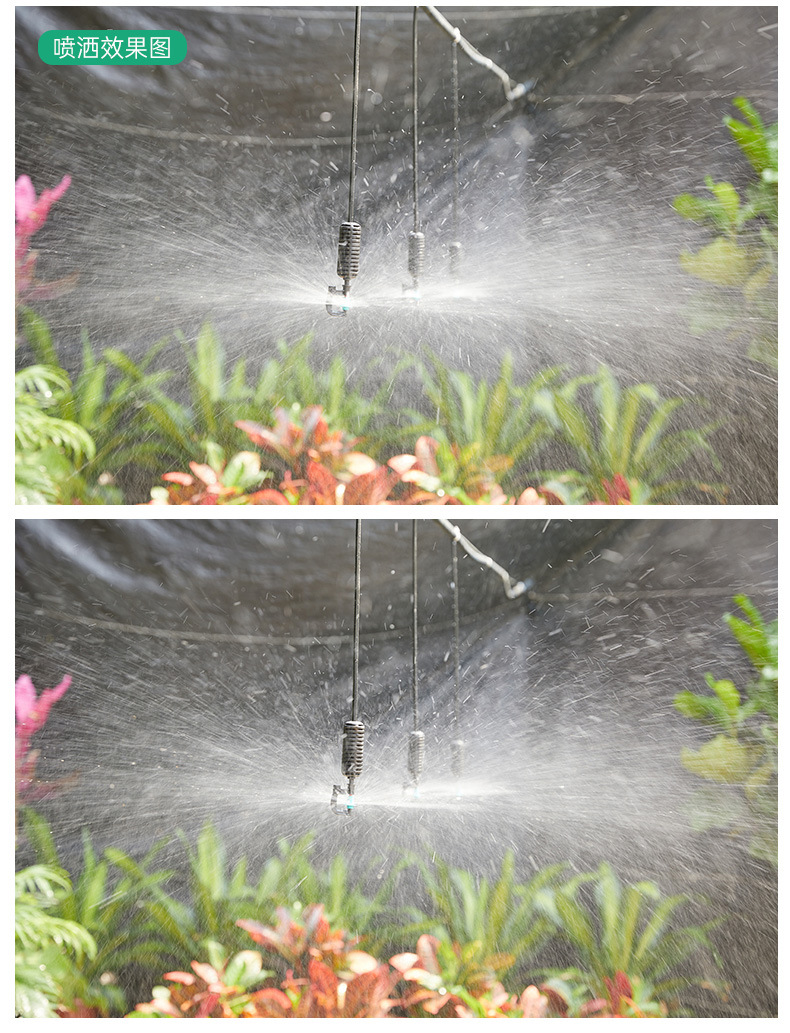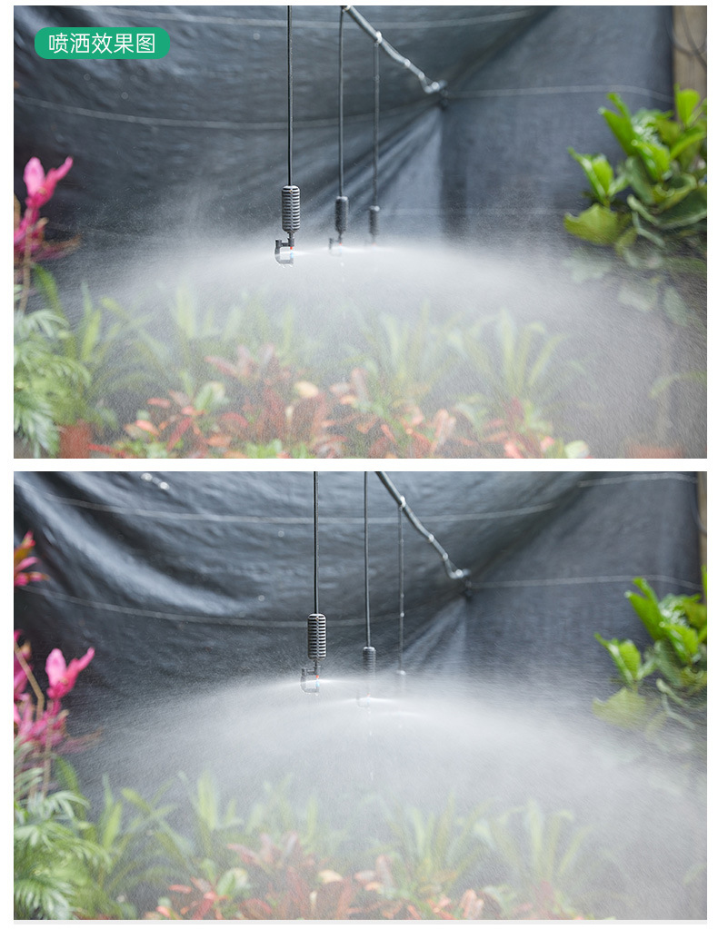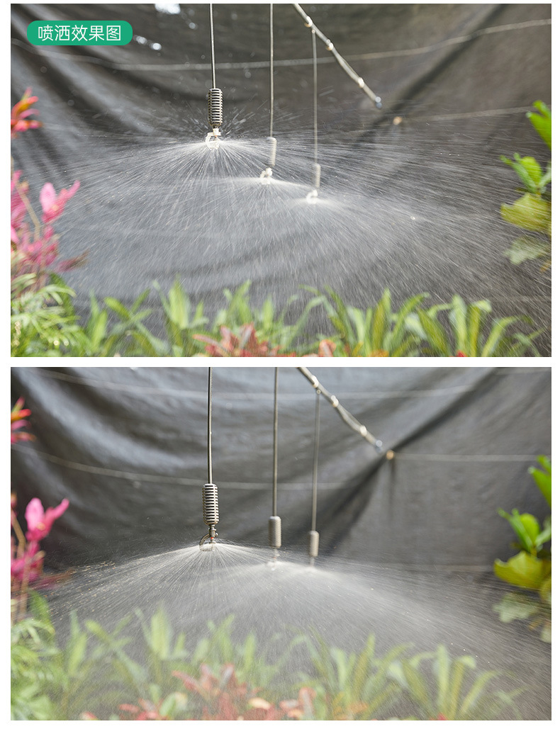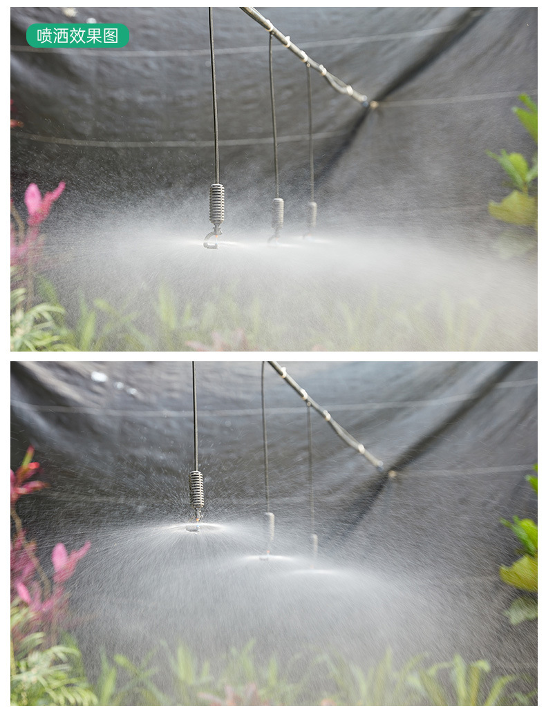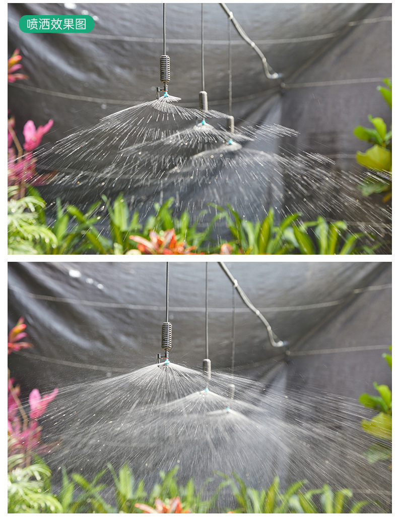 トンネルに360度回転霧化マイクロノズルを掛けて農業用トンネルに水をやるスプレー設備噴霧冷却ノズル