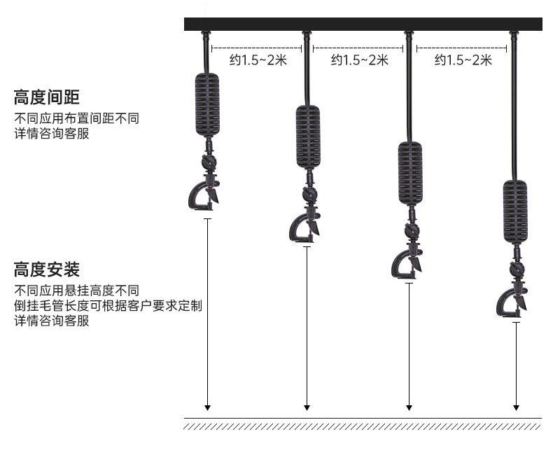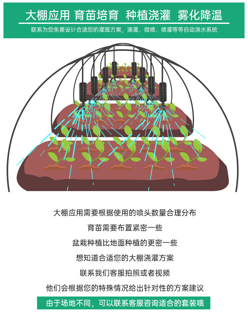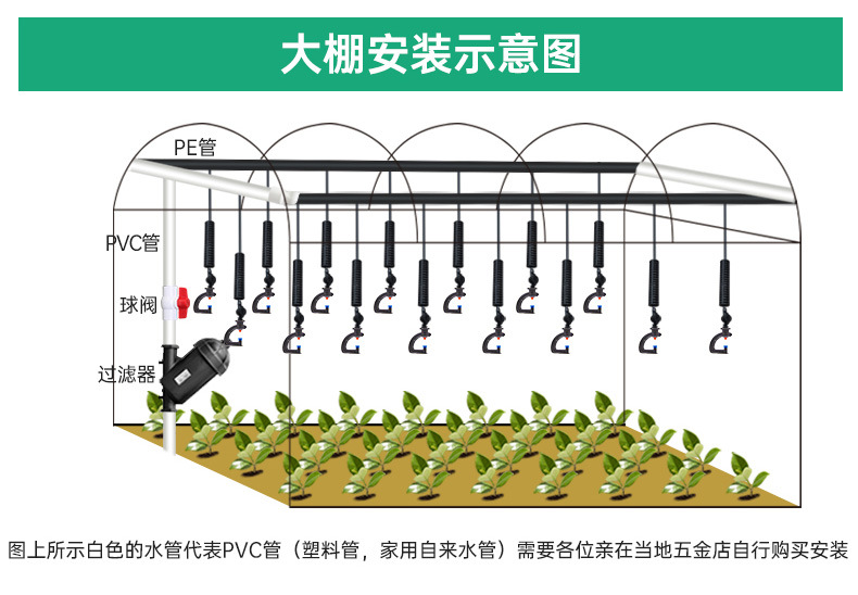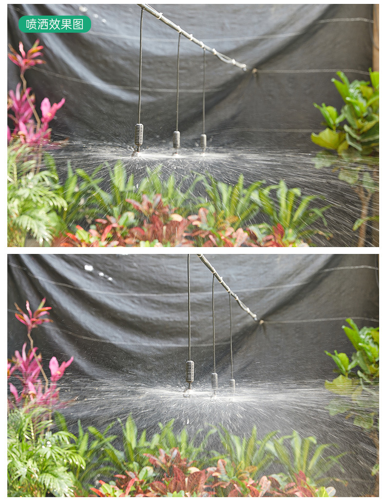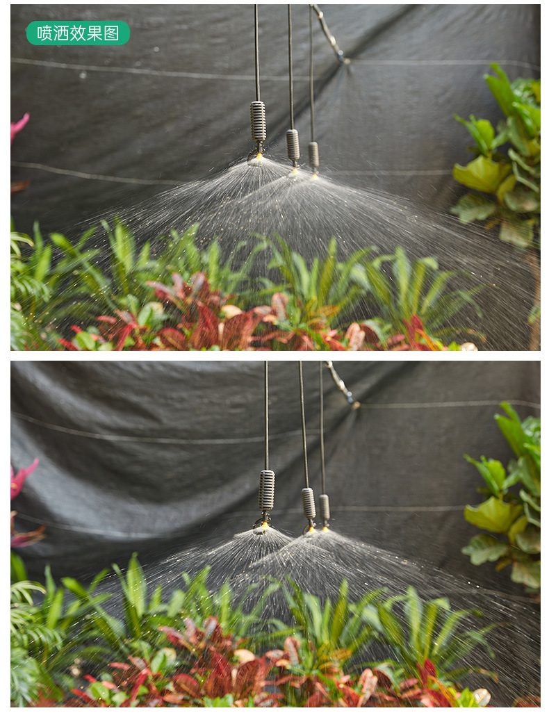 トンネルに360度回転霧化マイクロノズルを掛けて農業用トンネルに水をやるスプレー設備噴霧冷却ノズル