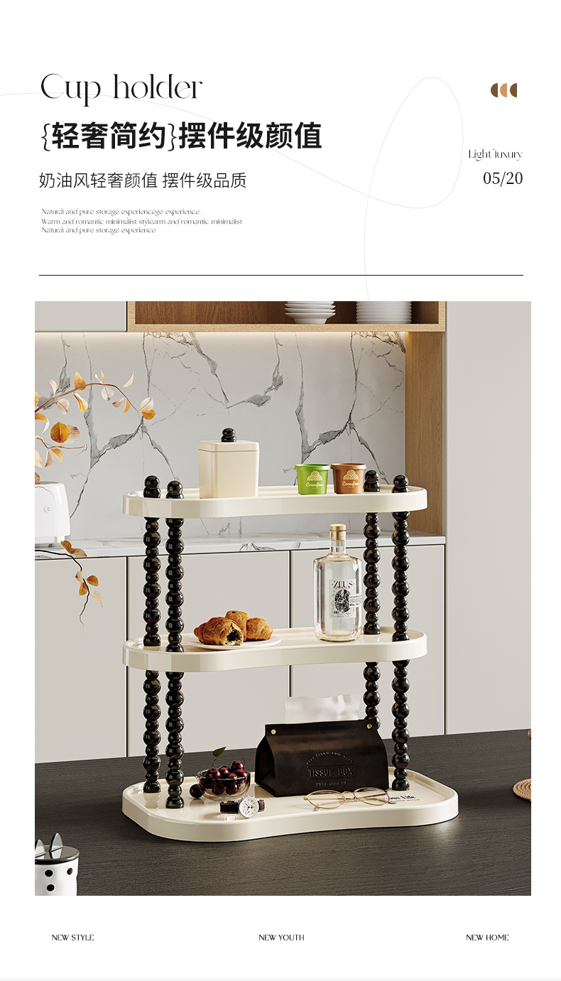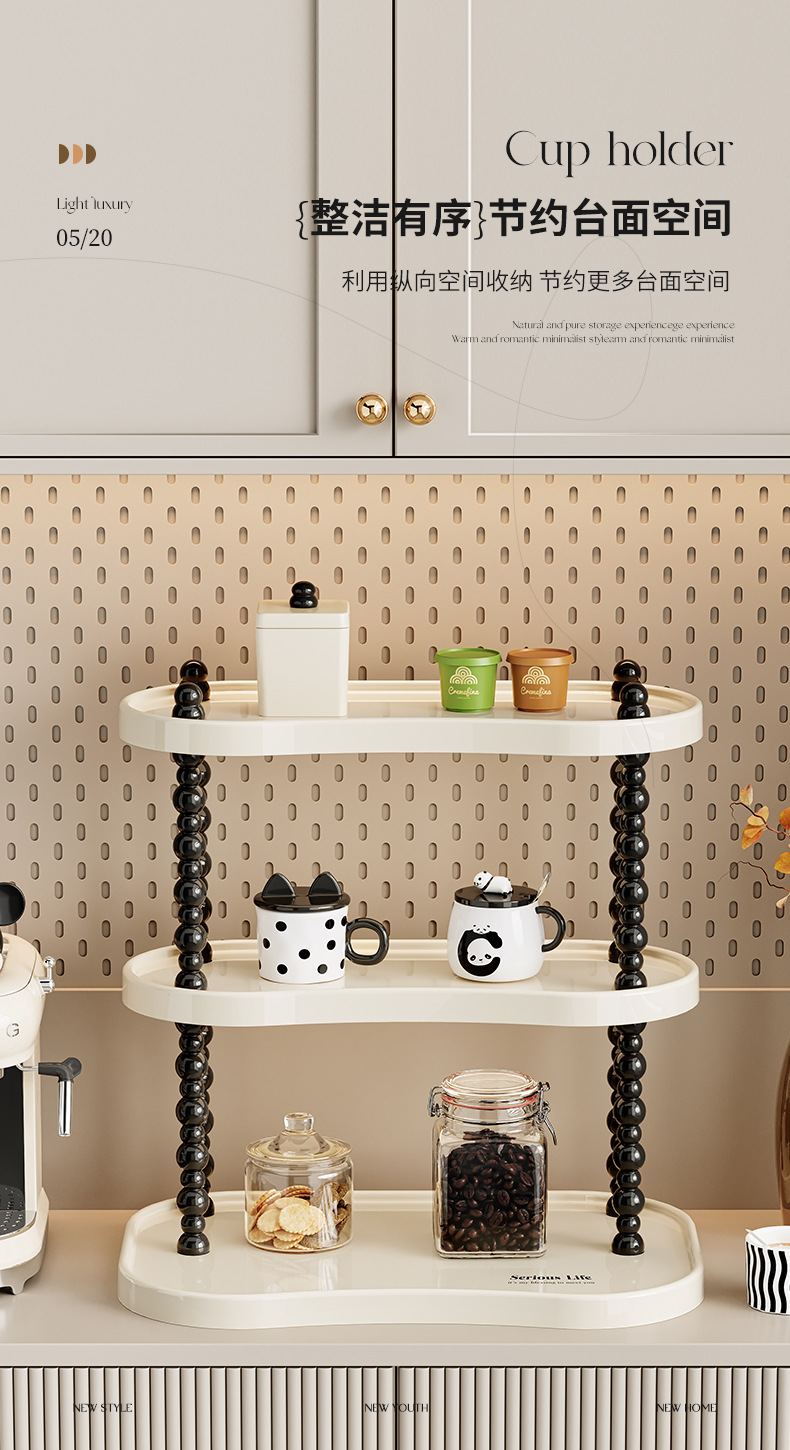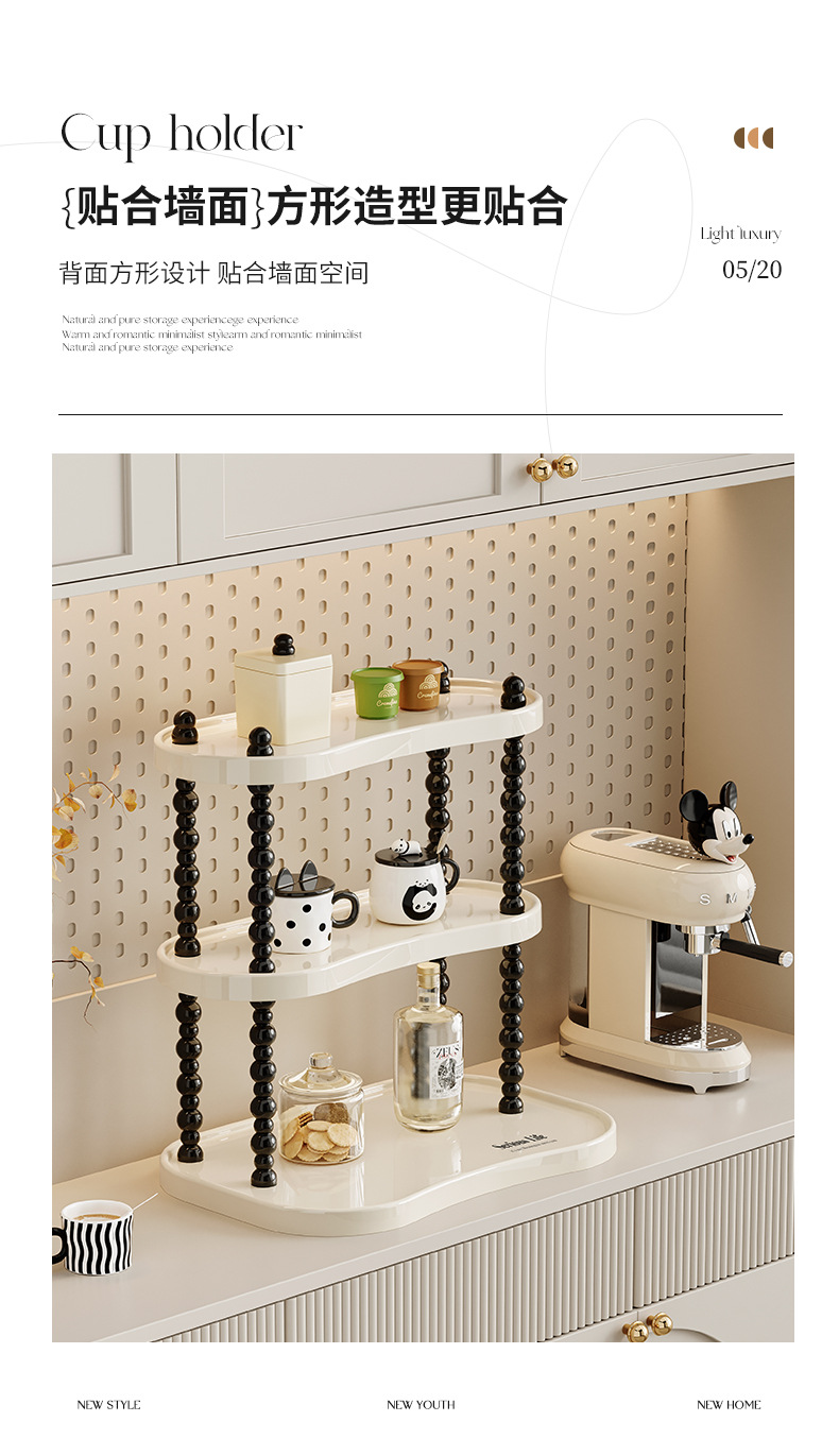 カップ収納棚デスクトップコップ収納棚サイドキャビネットカップ水たまりラッククリーム風キッチンカップ棚