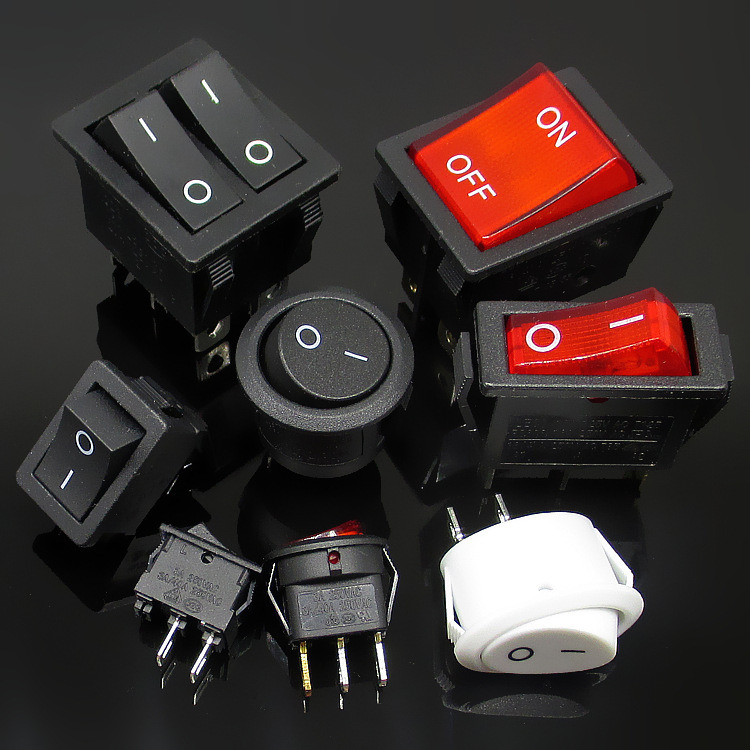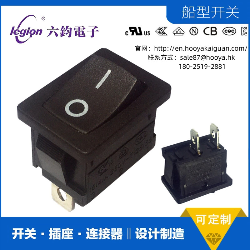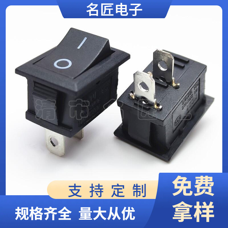 船型介绍:船型开关也称波形开关,其结构与钮子开关相同,只是把钮柄换成船型。船型开关常用作电子设备的电源开关,其触点分为单刀单掷和双刀双掷等几种,有些开关需要带灯还带有指示灯. 应用范围:船型开关应用于饮水机、跑步机、电脑音箱、电瓶车、摩托车、离子电视机、咖啡壶、排插、按摩机等,主要是家用电器之类的用的比较多。 船型开关寿命的测试方法:主要测试开合的次数,直至损坏,如果不用手动可用1个小电机带动偏心开合开关,用计数器记录次数!此开关要求安规认证的,产品在国内销售的话用CQC,国外的话看具体销售去哪一个国家,如美国UL,加拿大CUL,欧洲国家有VDE、ENEC、TUV等安规认证。 船形开关分类: 1. 单刀单掷:1个动触点和1个静触点。只有1通道 2. 单刀双掷:1个动触点和2个静触点,(可分别接通两边的静触点) 3. 双刀单掷,2个动触点和2个静触点,有2个通道 4. 双刀双掷,2个动触点和4个静触点,有4个通道 (可分别接通两边的2个静触点) 船形开关的故障问题: 船形开关内部有一个金属片,中间有弹簧支点,弹簧位移以及塑料支架老化变形,开关就不灵活了,可以断电后拆开来看看,如果不是塑料件损坏,也许可以恢复。开关内部的零线是直通的,与开关部件没有关系,因此有因为开关跳空气开关的话,是经过开关的零线的绝缘层损伤,可以将损伤的一段剪掉重新接线,注意绝缘性要保证。也可能是指示灯的脚有短路,重新接线即可。