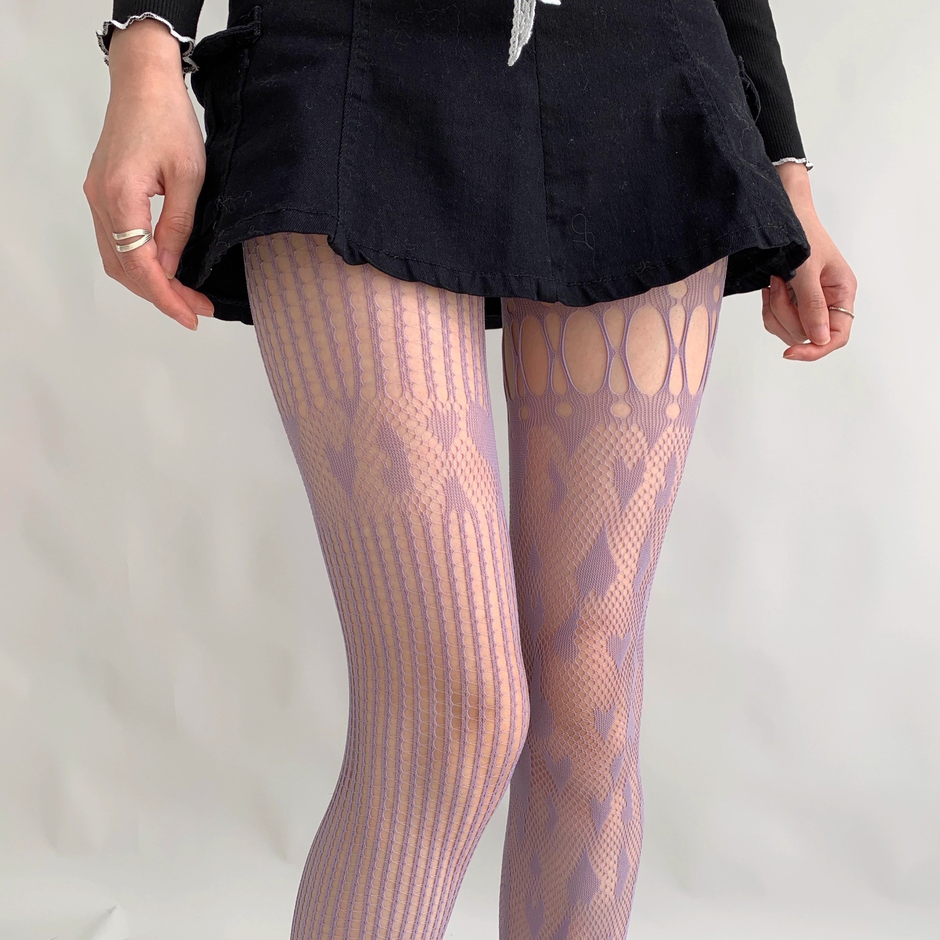 欧米の国境を越えたミレニアムギャルy 2k個性的な破れ穴の黒い糸の非対称のハンギングベルトの透かし彫りの超薄い一体の靴下