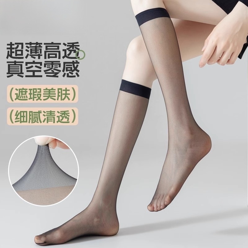 ふくらはぎソックスレディース薄手中筒圧力ソックス夏透明ins潮日系jk靴下学院風半筒白糸