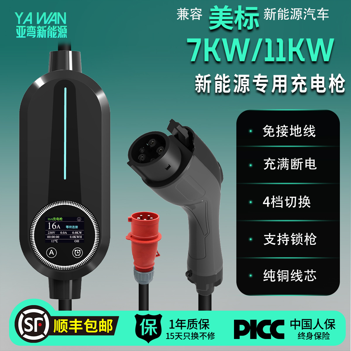 美标EV charger新能源汽车J1772 家用充电器枪16A 跨境专供1 1kw