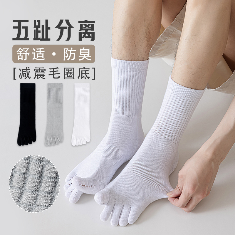 五本指の靴下の男性の中筒の運動は白い衝撃を受けて指の靴下を分けます。