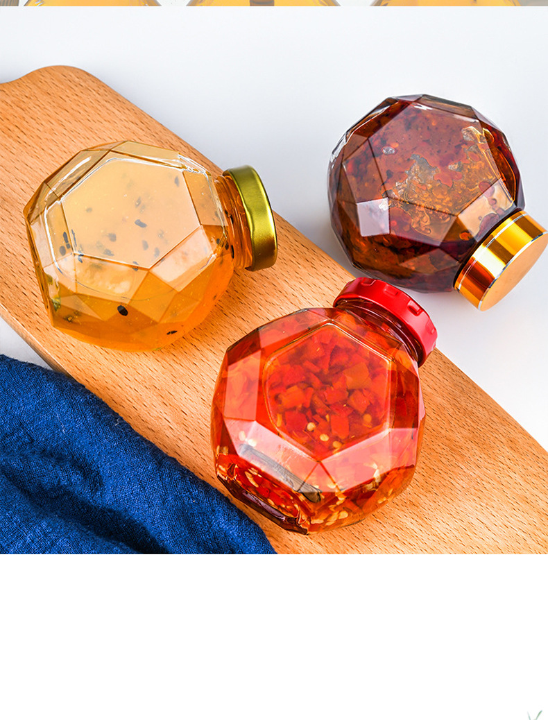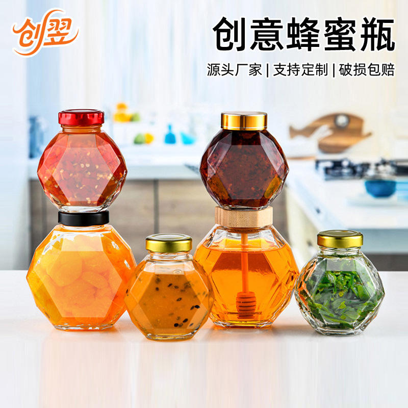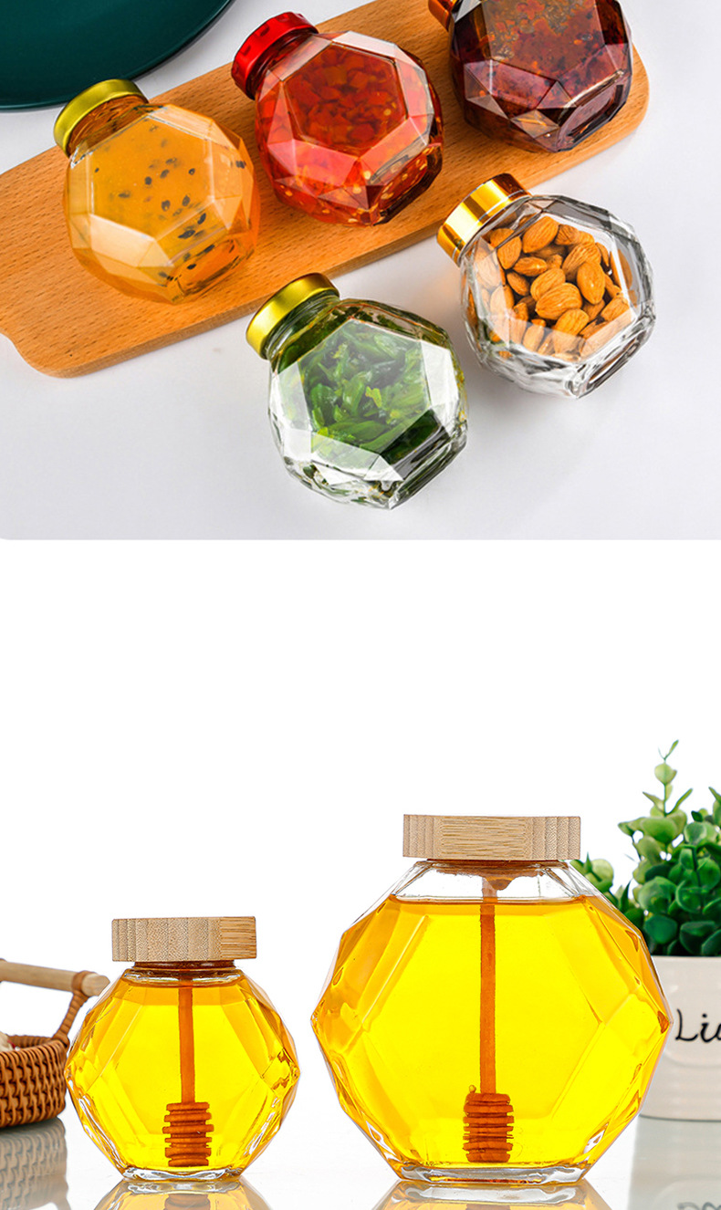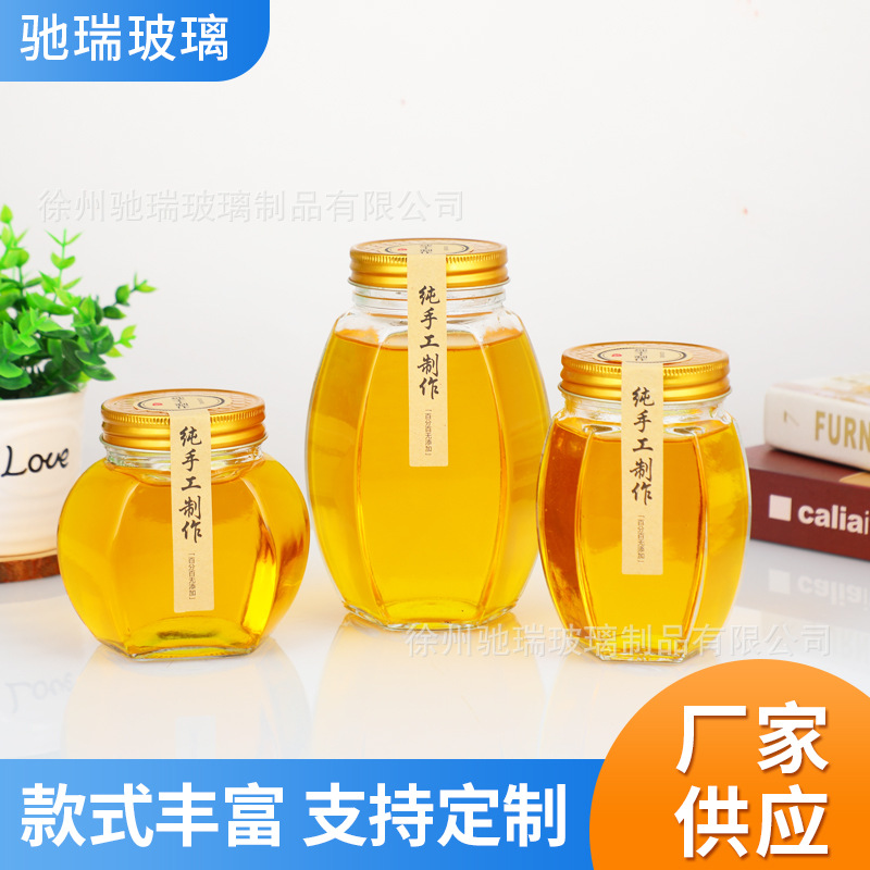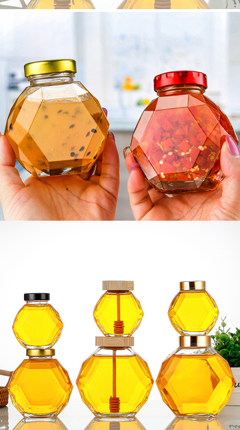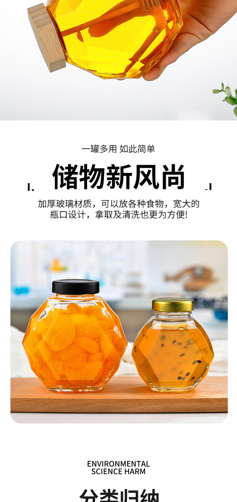 透明六角蜂蜜瓶密封貯蔵タンク食品収納缶詰唐辛子キャビア分注ガラス瓶卸売り