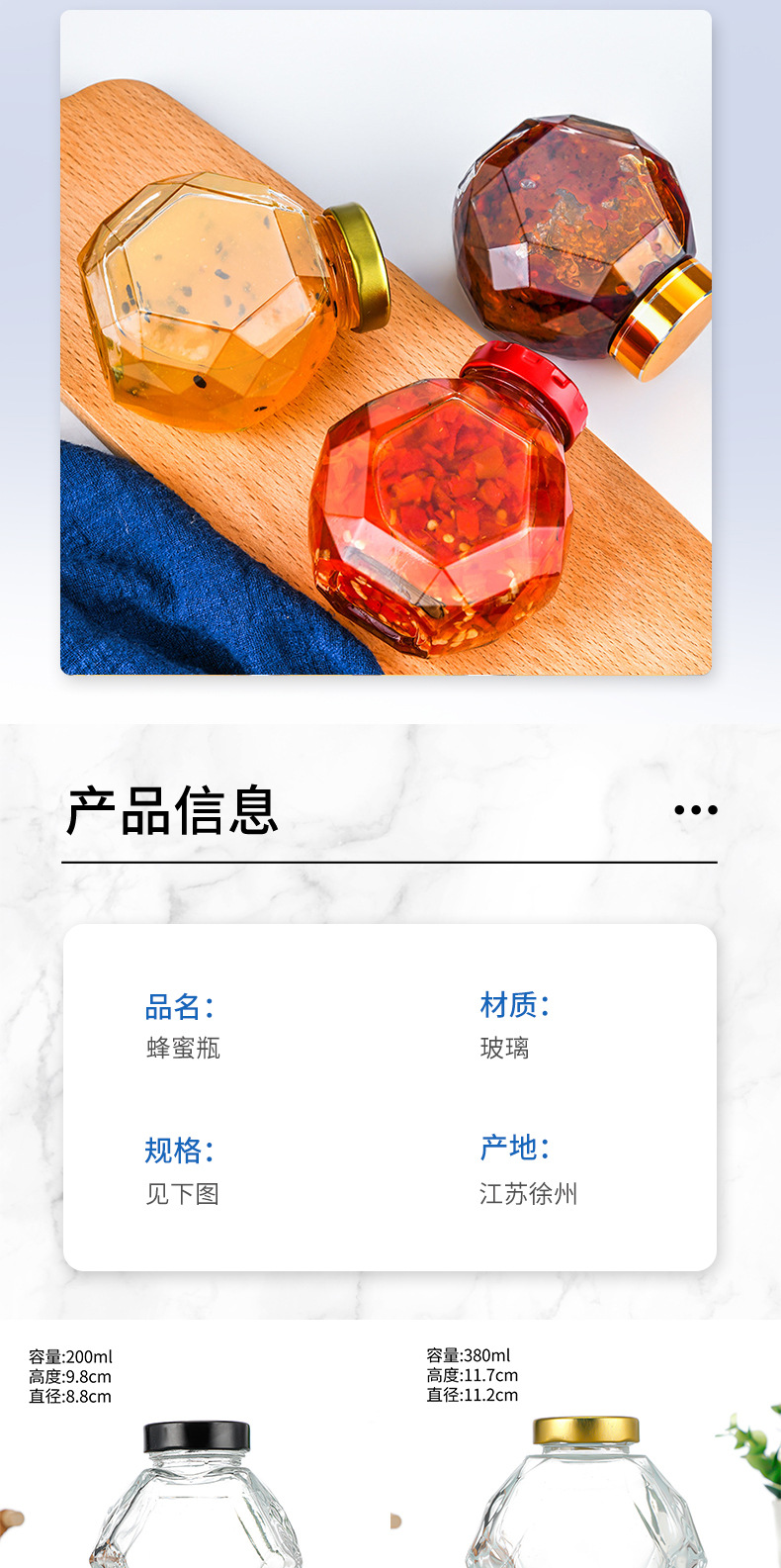 蜂蜜瓶包装玻璃瓶透明密封空瓶酱菜果酱分装瓶多规格瓶食品级