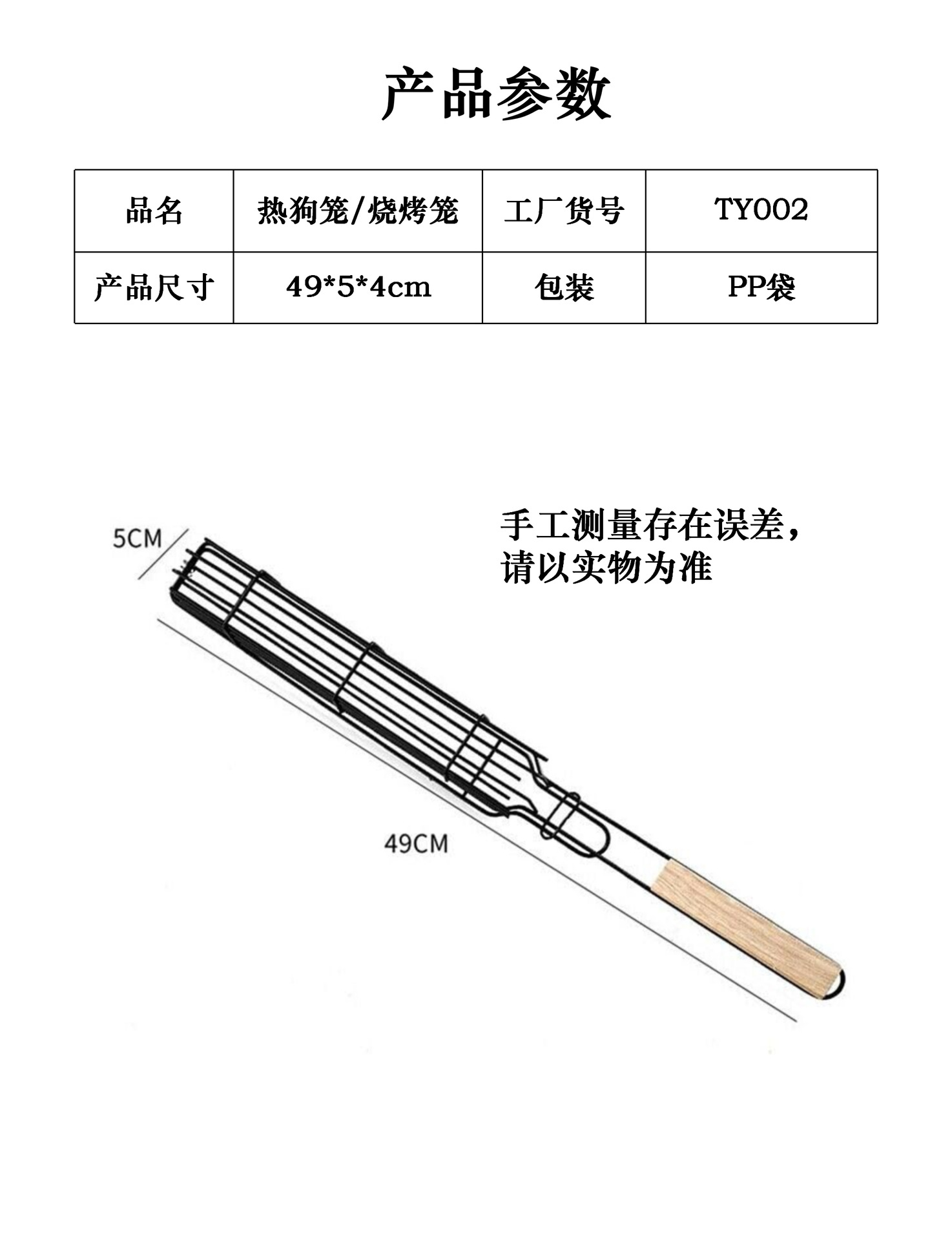 木柄热狗笼烧烤篮烧烤网蔬菜香肠烧烤夹折叠网架香肠夹户外露营
