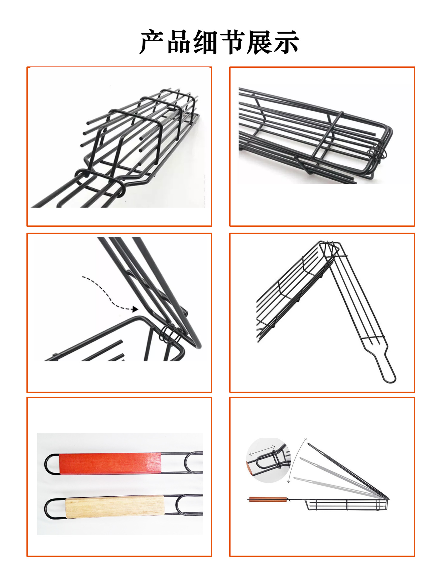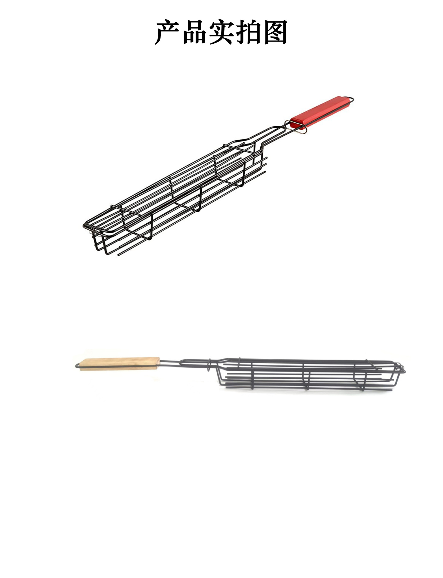 户外烧烤架不沾烧烤篮电泳香肠网烧烤网烧烤笼香肠夹木柄BBQ网夹