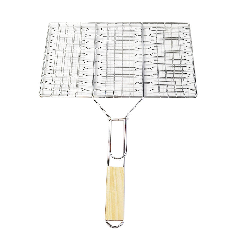 クロスボーダーミニ木製ハンドルバーベキューケージホットドッグケージ屋外鉄線ステンレス鋼バーベキューネットピクニックバーベキューツール炭火焼き