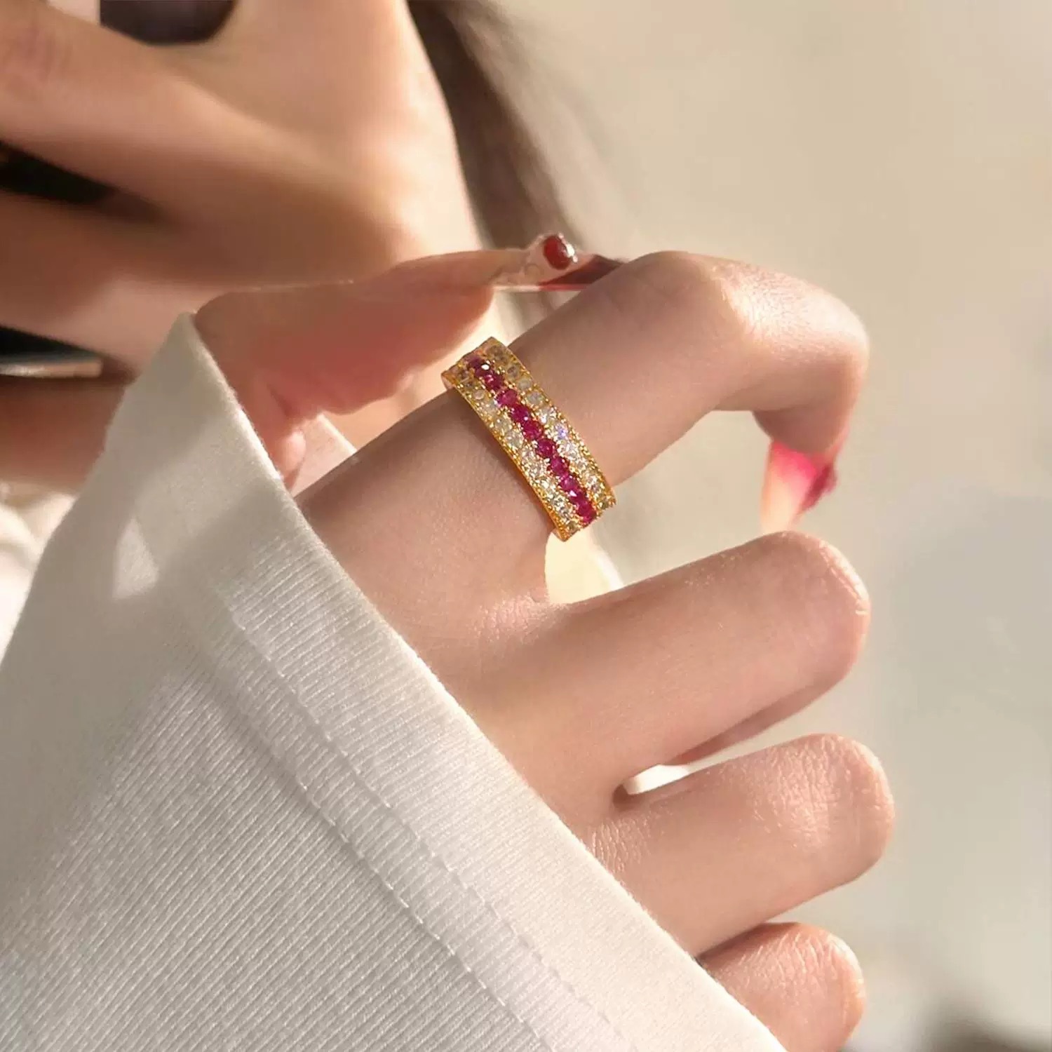 石いっぱいの女性の指輪のジルコンの指輪のアクセサリーのメーカーは女性の金の条を出荷して対外貿易の経典の装飾をやめます。
