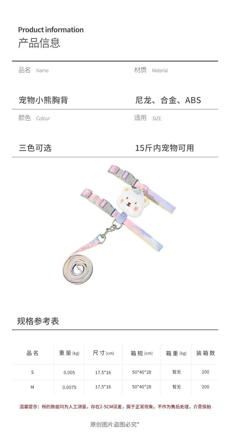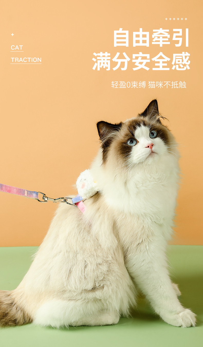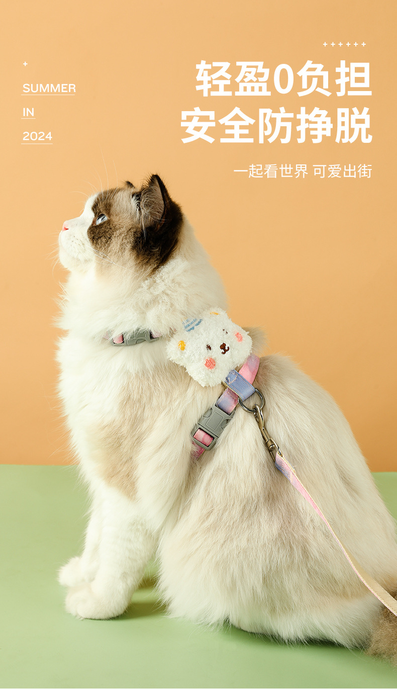 ペット牽引紐小蜂猫胸背夏高颜値猫チェーン中小型犬散歩猫犬牽引紐