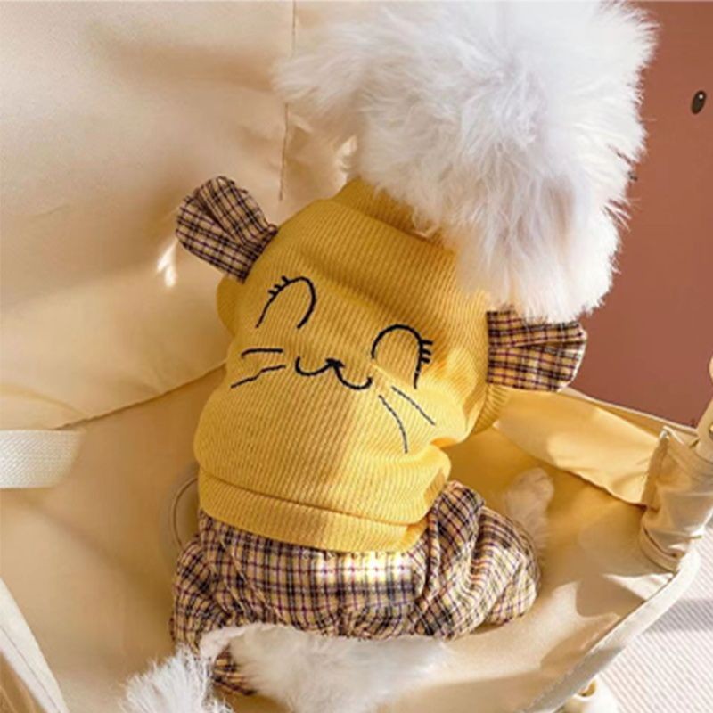 ペット秋冬ショルダーバッグベルベット服中小型犬テディ比熊博美かわいい子犬四脚秋冬服