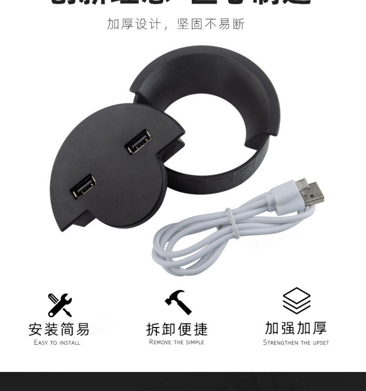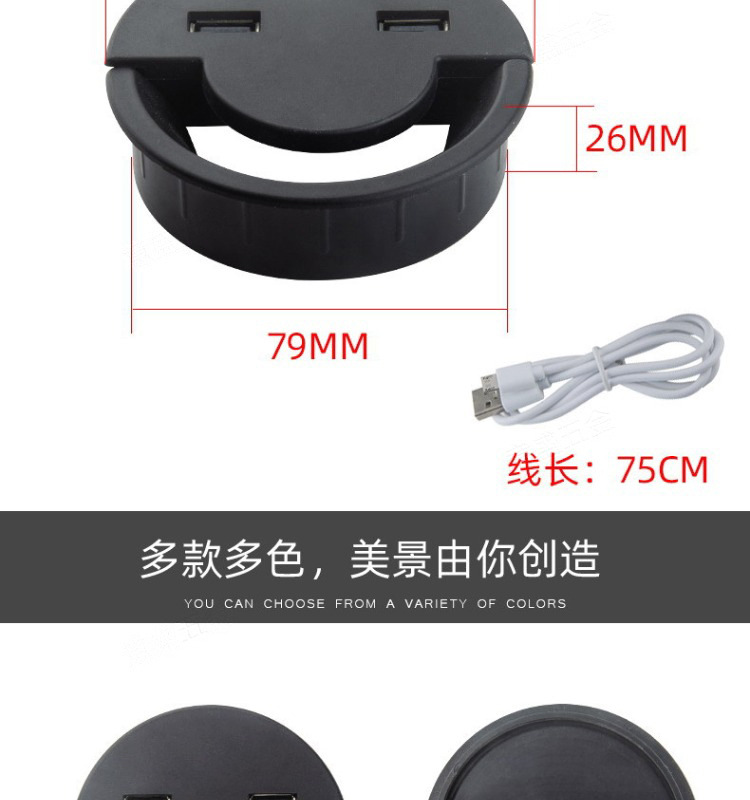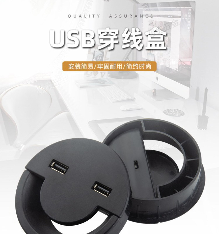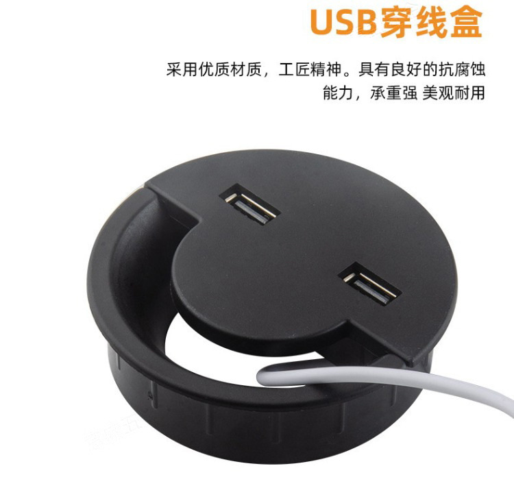 パソコンのデスクにusbケーブルボックス付きabsプラスチック製のケーブルボックス会議テーブルの丸い線穴カバーのデスクトップのケーブルボックス