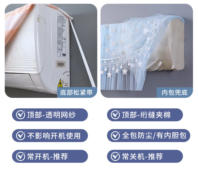 メーカー卸売 家庭用エアコンカバー 壁掛け式防塵カバー レース飾り 直風防止カーテン 開動時も取り外さないタイプ