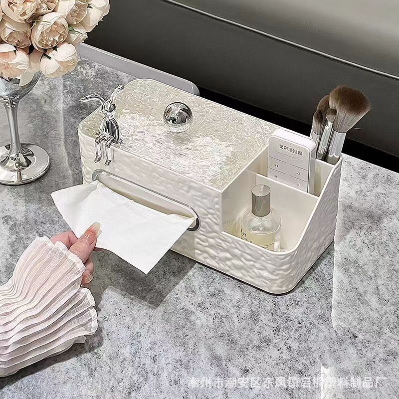 多機能ティッシュボックスのリビングルームの引き出し箱の高級な豪華な家庭用お茶の高級感リモコンの収納箱のアイデア