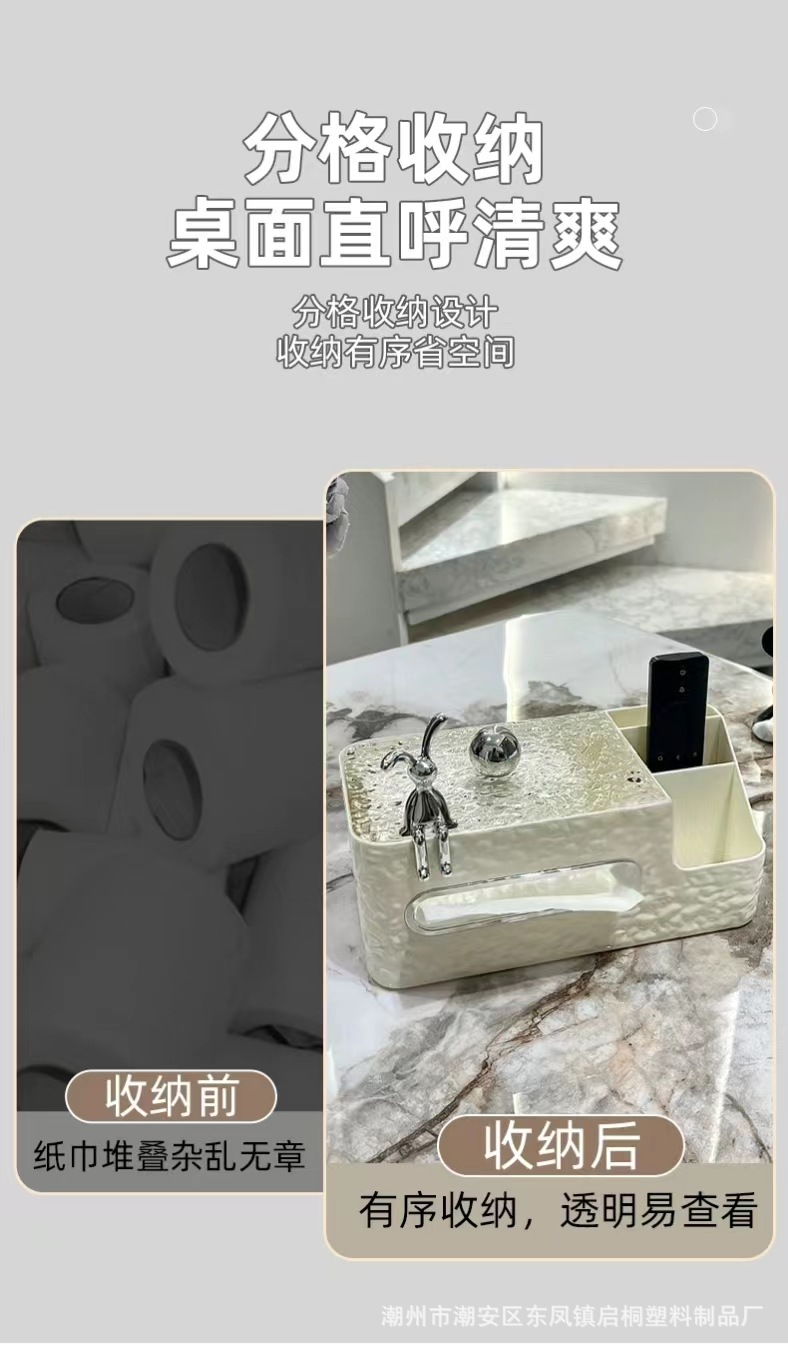 高档客厅纸巾盒多功能茶几桌面餐巾纸抽纸遥控器收纳盒家用轻奢款
