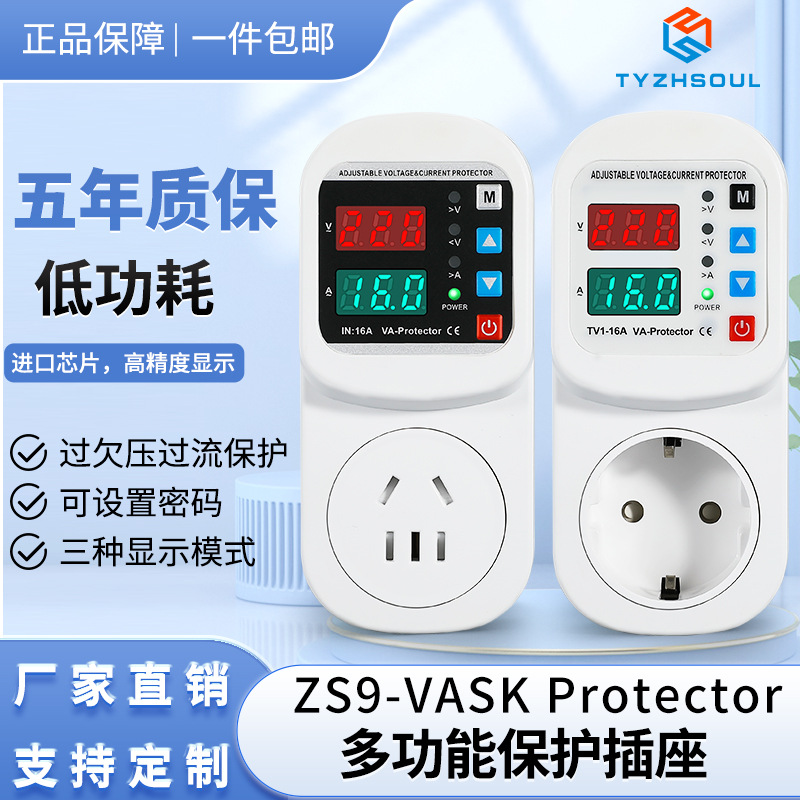 自複式デジタル表示過不足電圧保護器ソケット電圧電気調整可能国標欧標遅延家庭用電流制限器