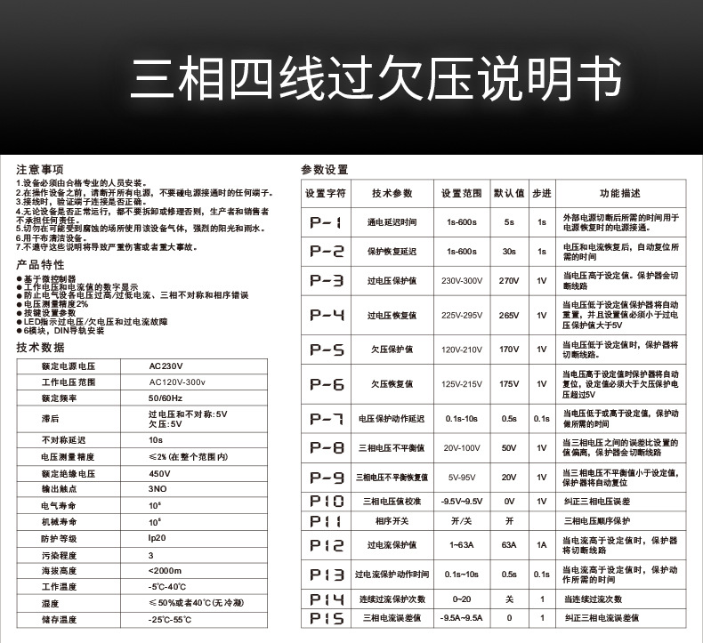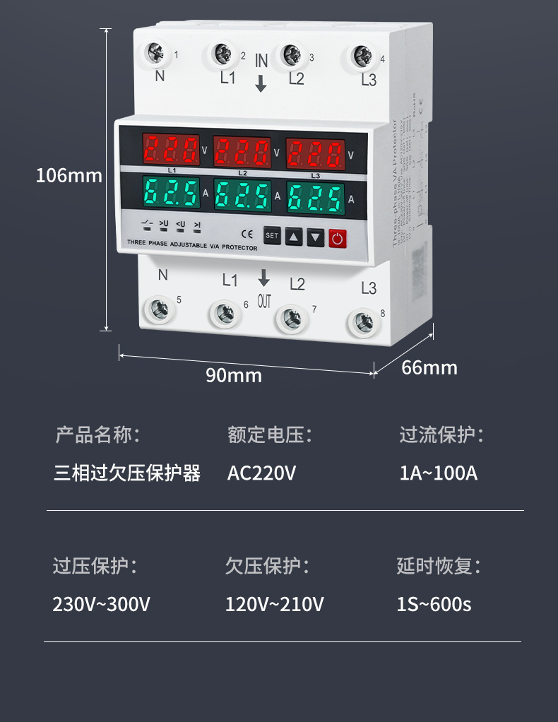 三相四線調整可能過不足電圧制限電流保護器自複式不足ゼロ欠相停電過電流負荷100a家庭用