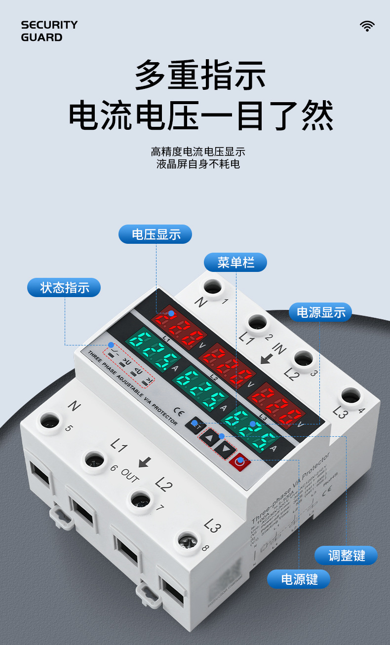 63A 調整可能電圧保護装置 過電圧・低電圧保護装置(CE認証)