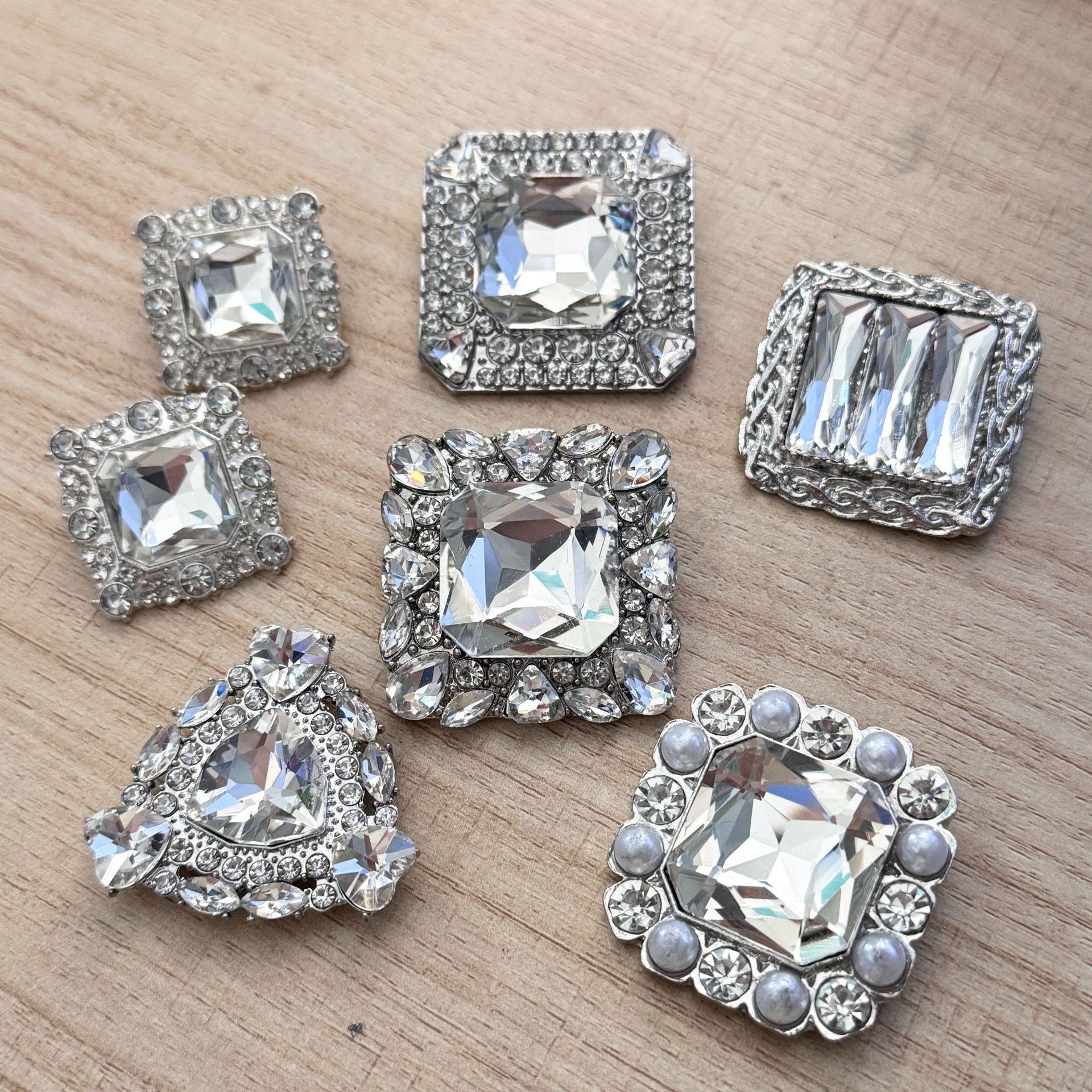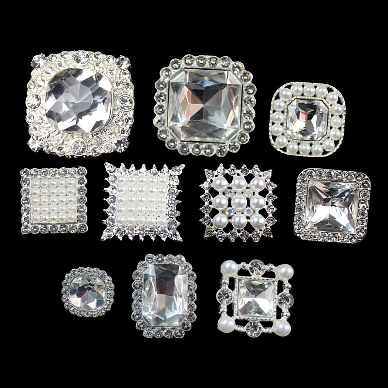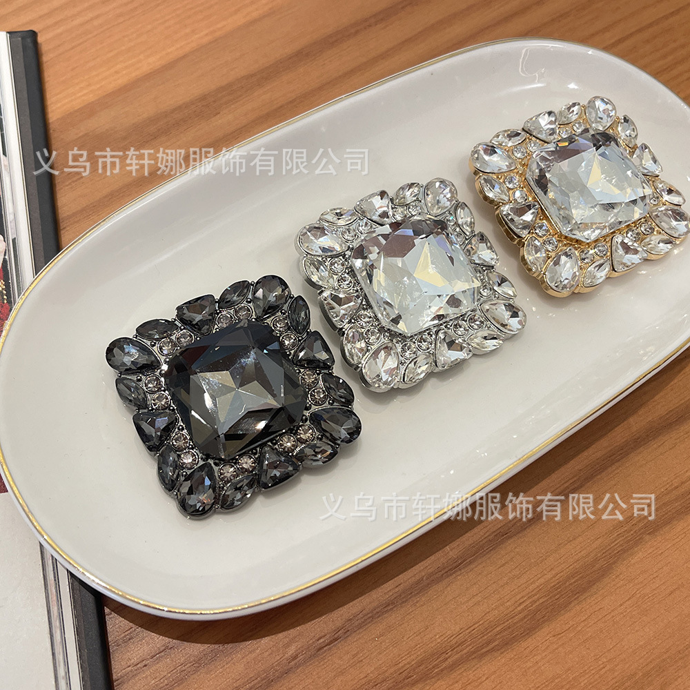 合金ダイヤモンドがちりばめられた正方形の透明ダイヤモンド服飾品バックル、装飾バックル、セーター、コート、ラインストーンバックル、ガラスダイヤモンドボタン