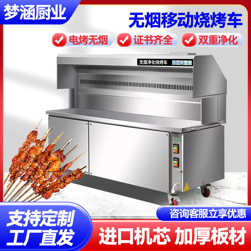 無煙浄化バーベキュー車メーカー、夜市屋台用移動式屋外木炭ステンレス製業務用バーベキューグリル