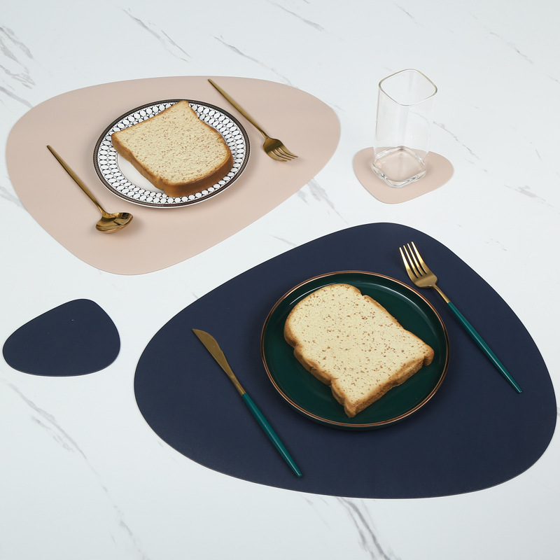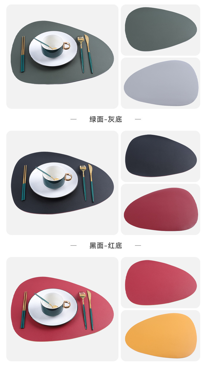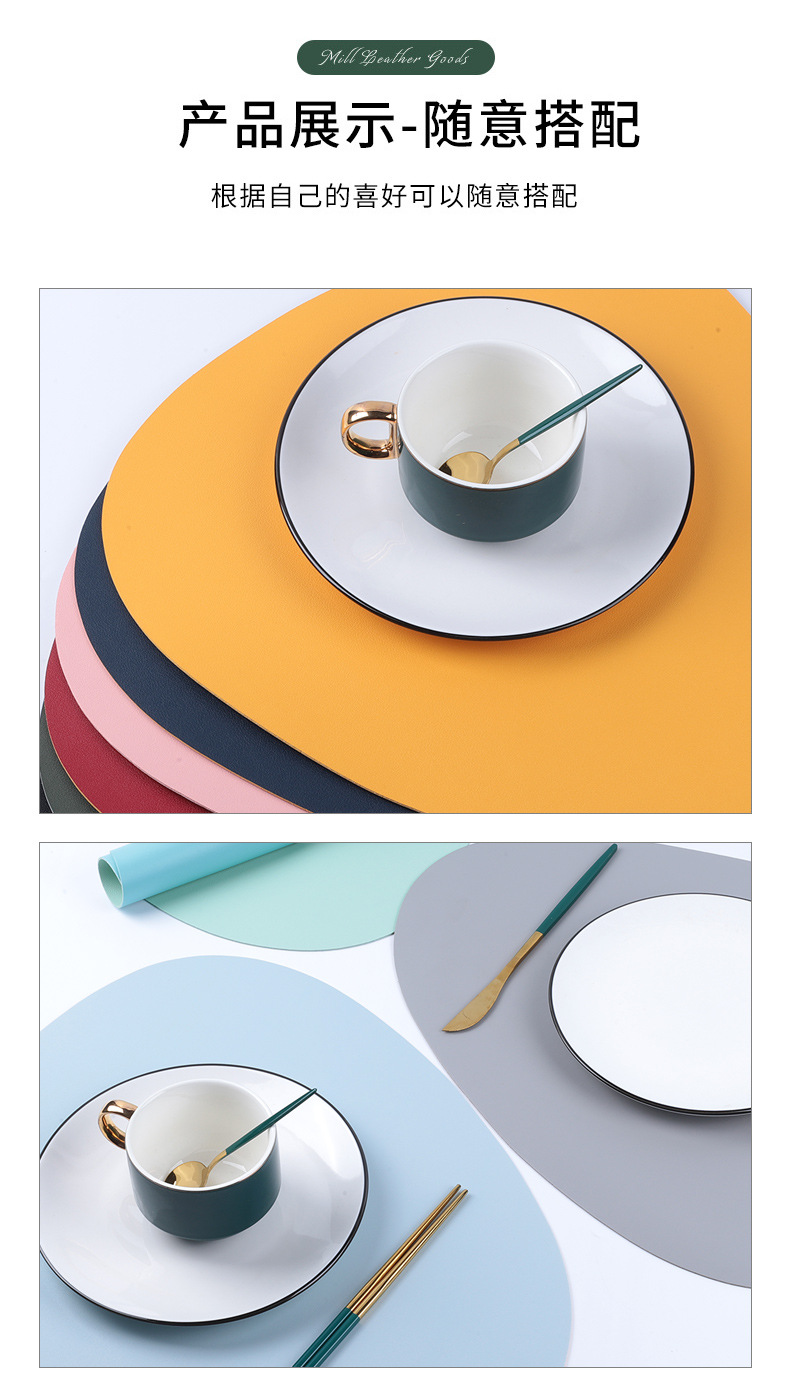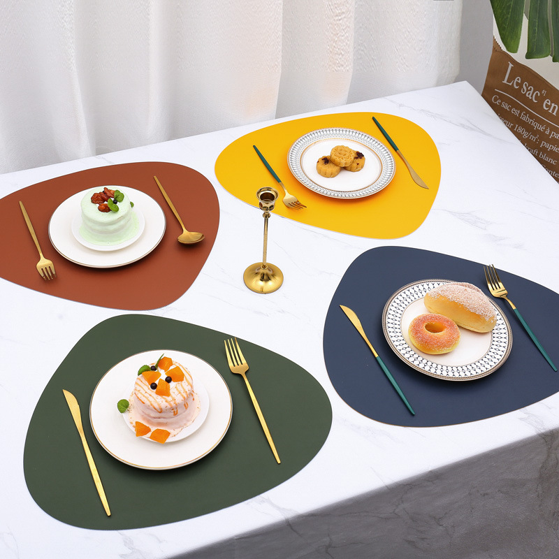 北欧風レザー不規則形洋食マット楕円形二色両面断熱マット滑り止め防水防油コースター食器