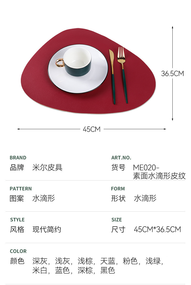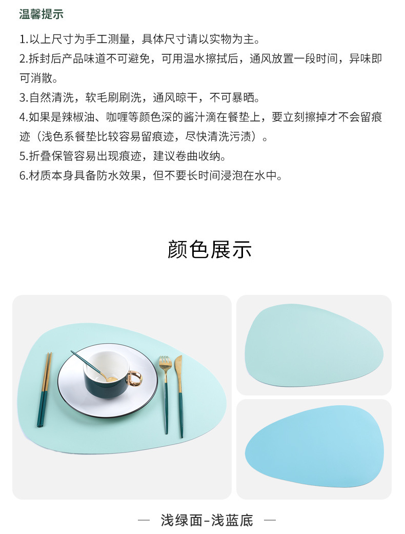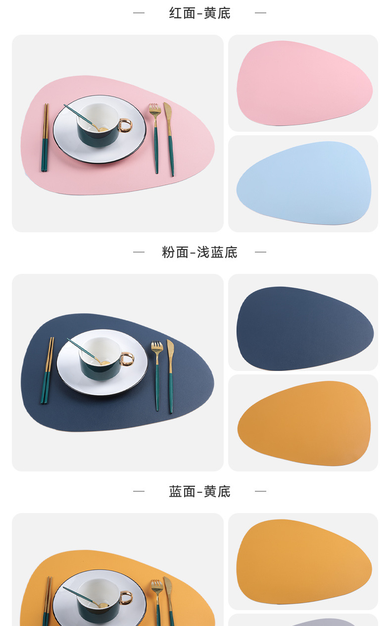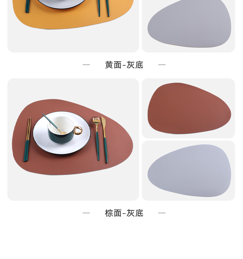 北欧風レザー不規則形洋食マット楕円形二色両面断熱マット滑り止め防水防油コースター食器