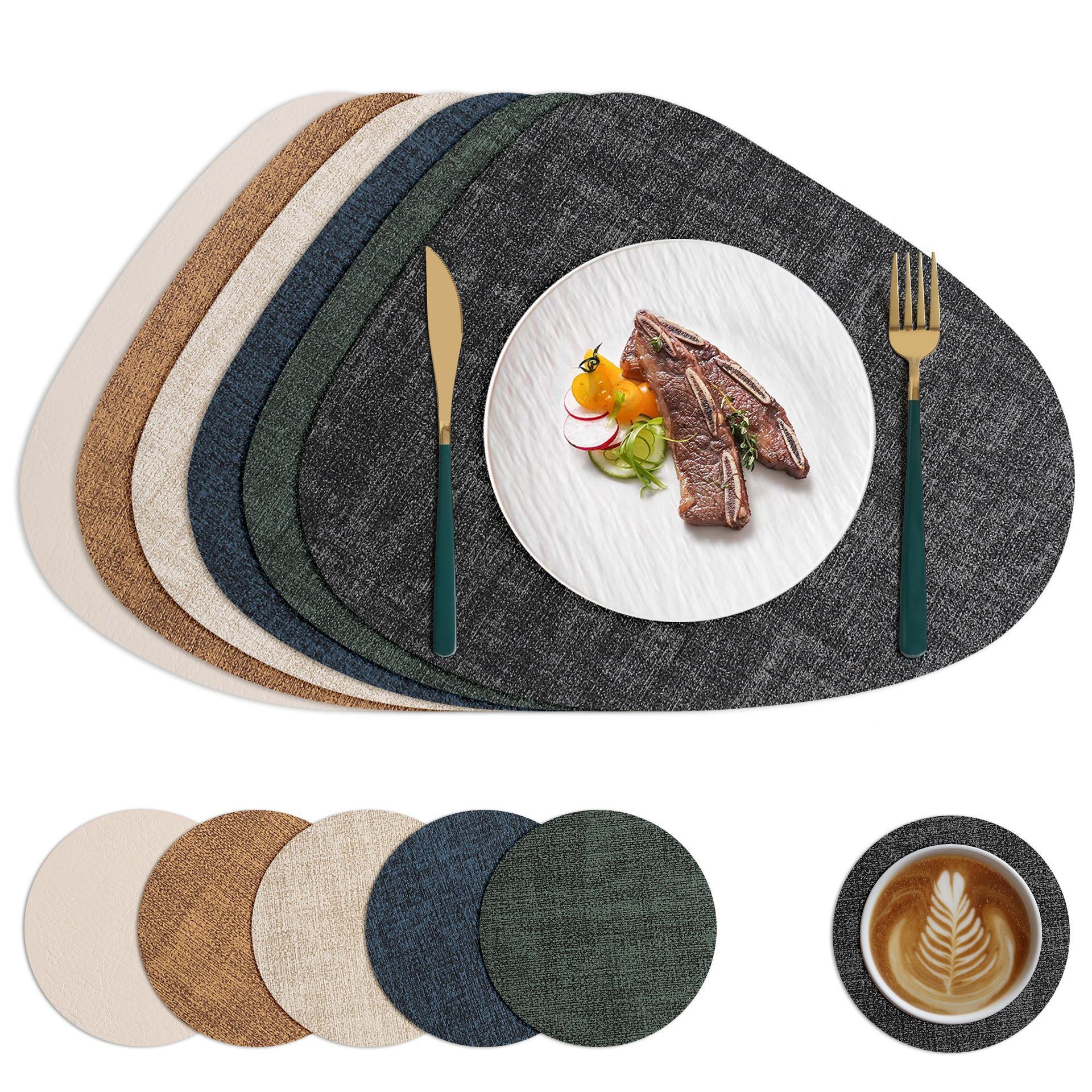 北欧風の不規則な革製プレースマット、滑り止め断熱テーブルマット、環境に優しい洋食マット、環境に優しい素材