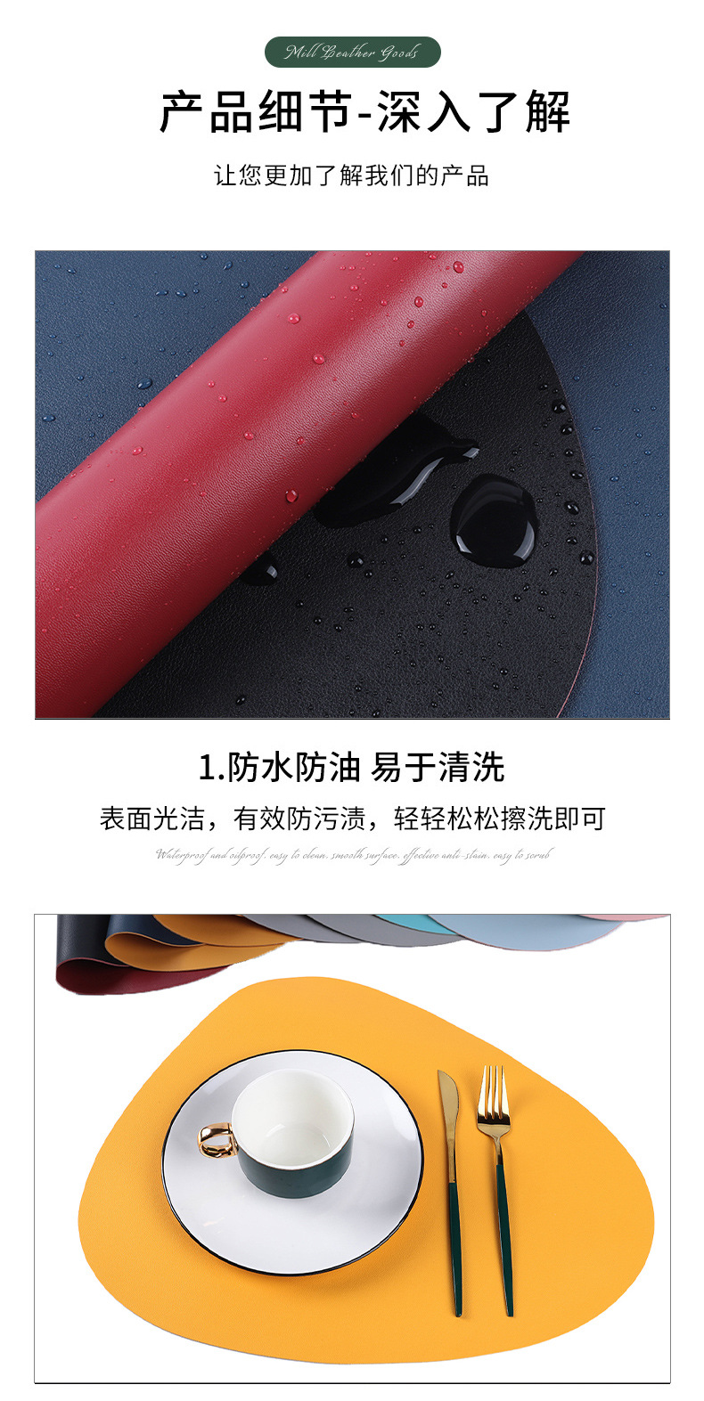 プレースマット、和風断熱マット、耐熱カップマット、食器、椀、箸、食器皿、洋食器、革製マット、カスタムメイド、モダンでシンプルなデザイン