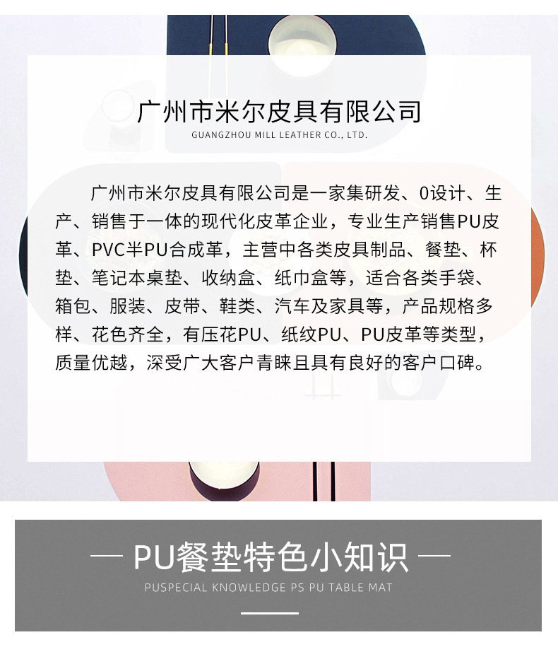工場直販の金属製レザープレースマット、洋食プレースマット、耐油テーブルマット、北欧風テーブルマット、シンプルなデザイン、越境輸出