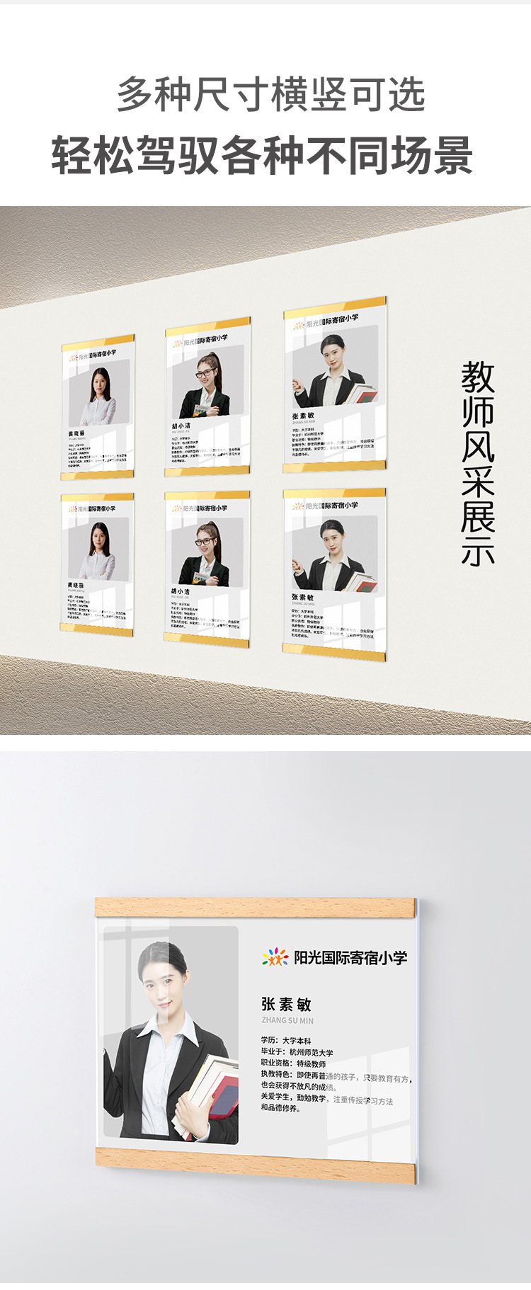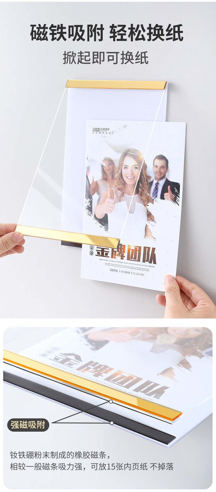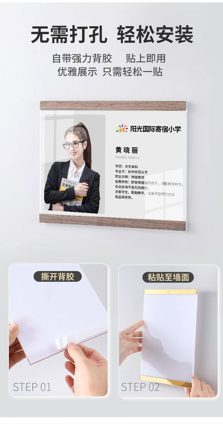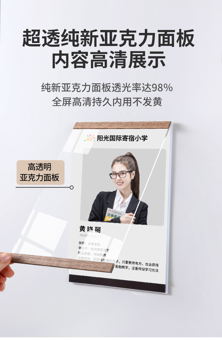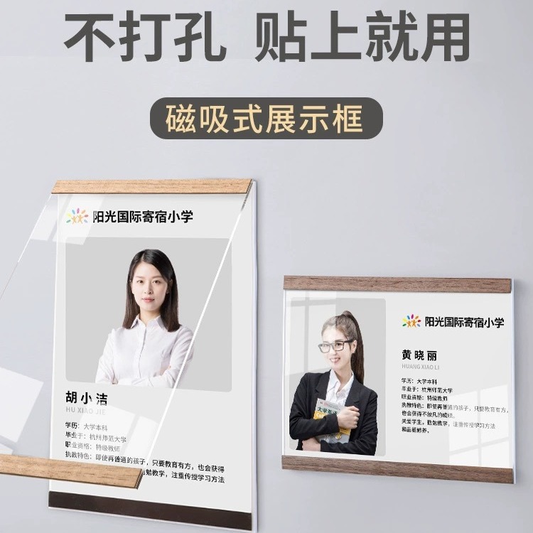 教師紹介企業文化壁a3アクリル磁気吸引フォトフレームa4栄誉展示壁模造木磁気展示カード