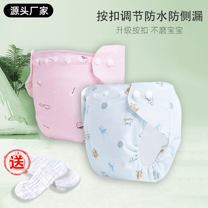 スナップボタンで調節可能な純綿A級ベビーガーゼおむつ、固定パンツ、洗えるベビーおむつ