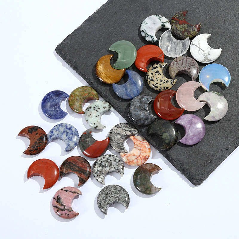 クロスボーダー30mm小月天然水晶瑪瑙石星月diy無孔三日月アクセサリーアクセサリー装飾