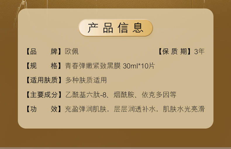 欧佩青春弾は黒膜30ml * 10枚を引き締めて水を補給して肌を保湿します。