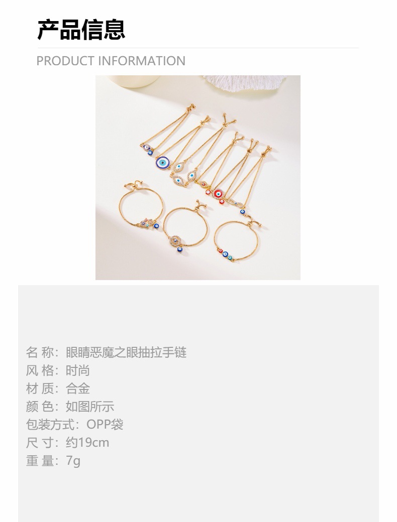 Aliexpress 新しい目悪魔の目ブレスレット合金ペンダント調節可能な青い目プルブレスレット