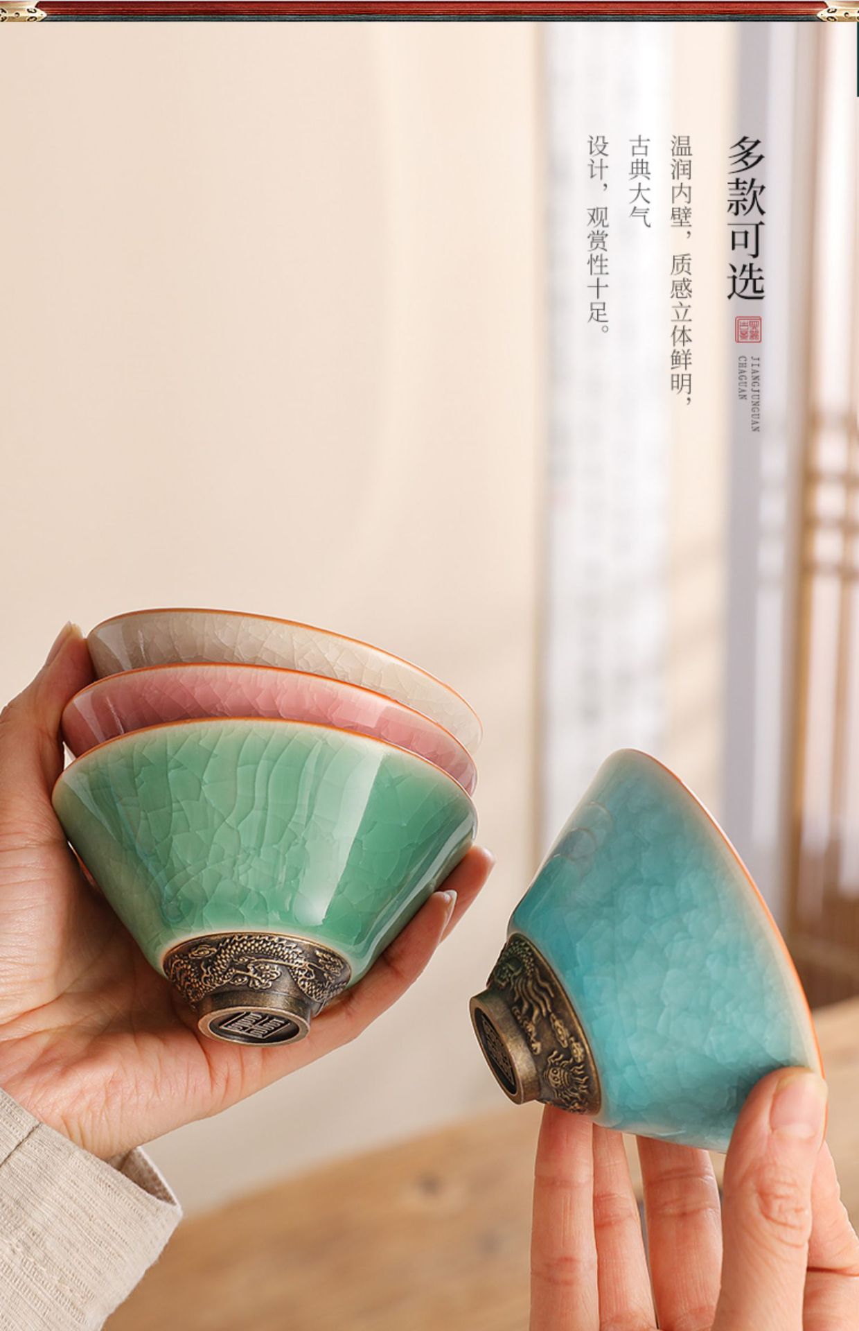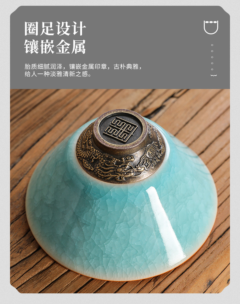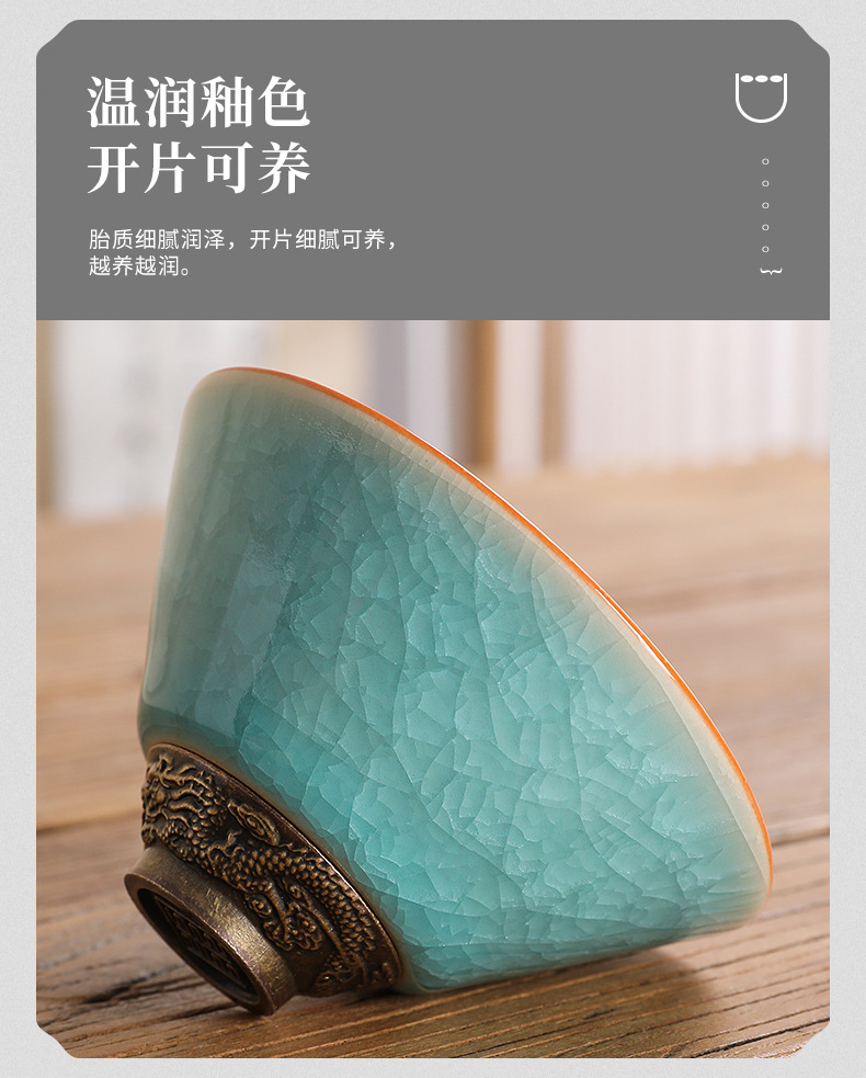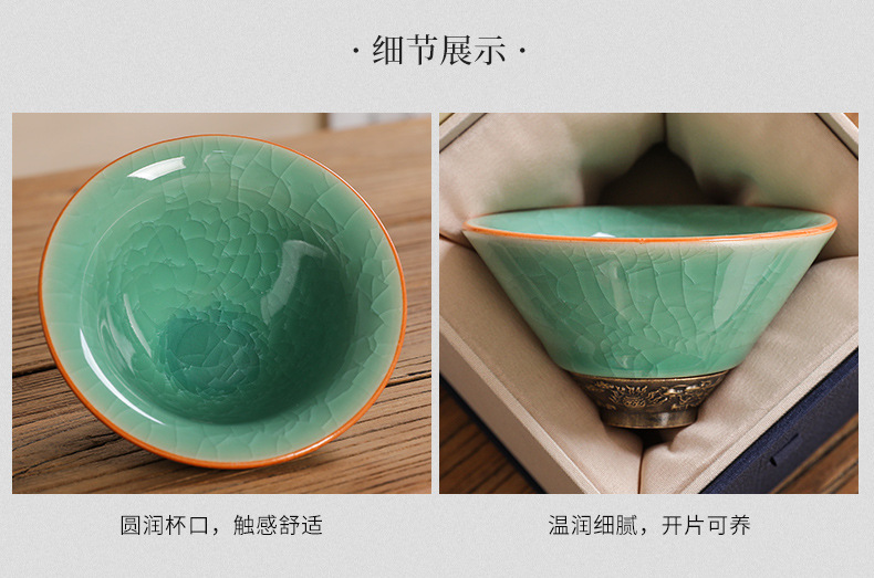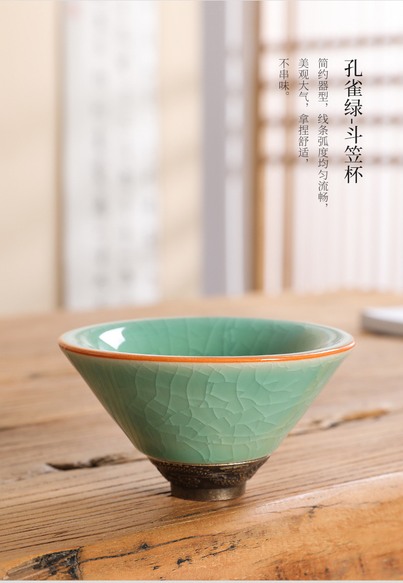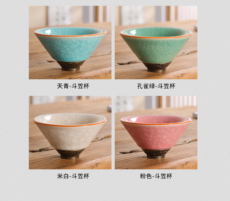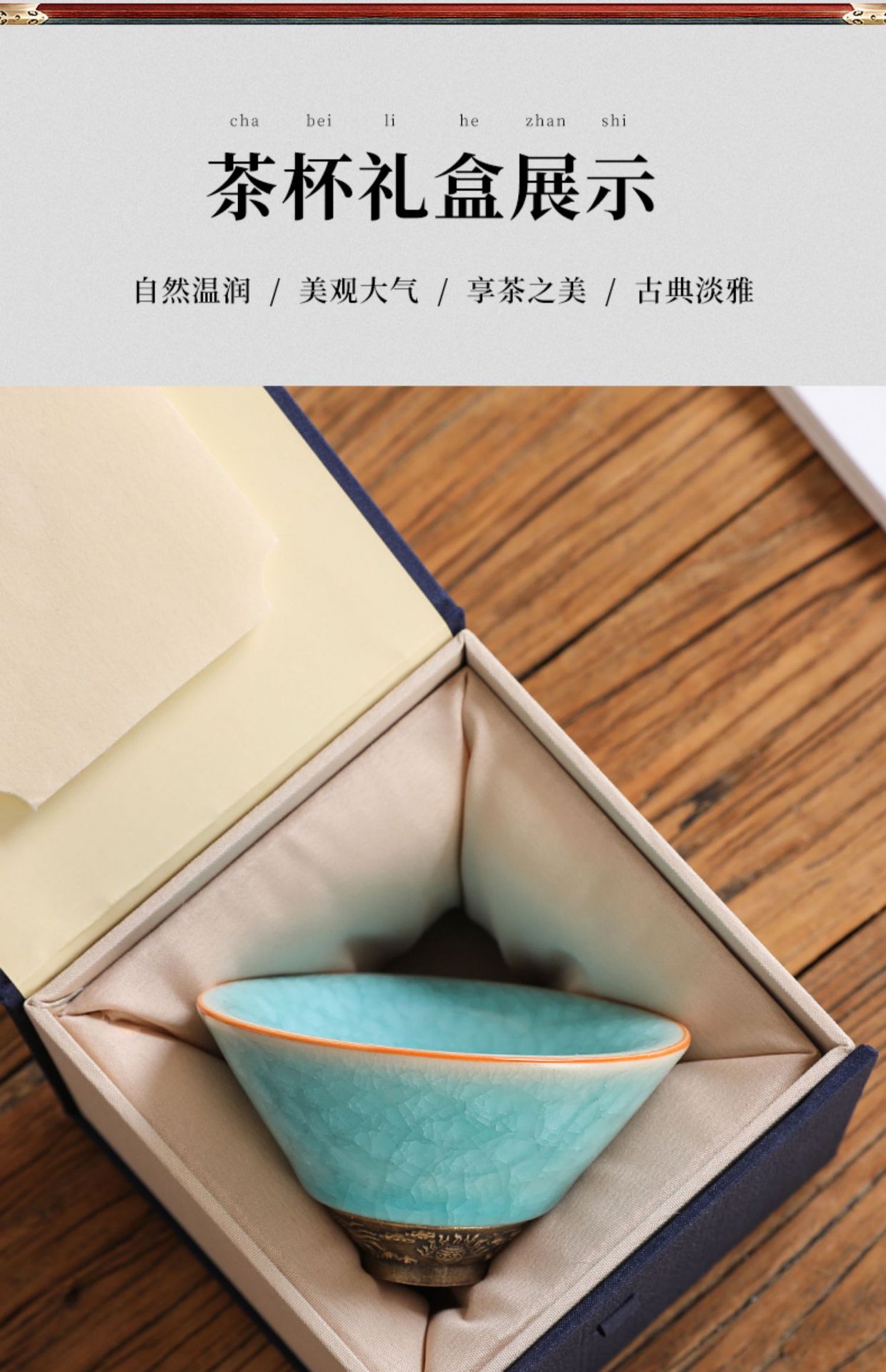主人の杯の氷の花の汝窯の陶磁器の闘笠の杯のお茶の杯のお茶の杯のお茶の杯のお茶の杯の開片は個人の専用のハイエンドの贈り物の金を養うことができます。