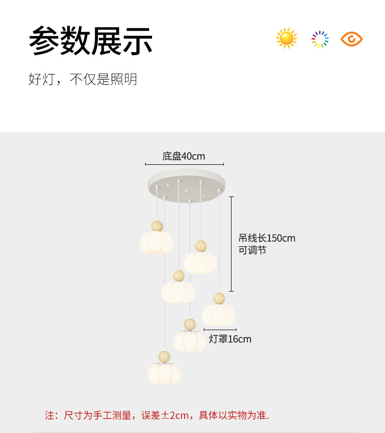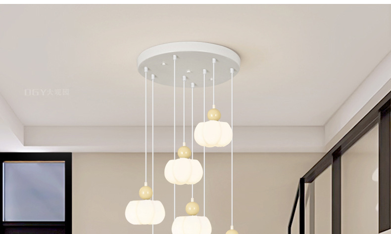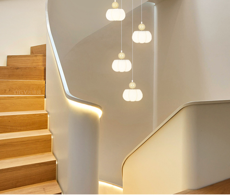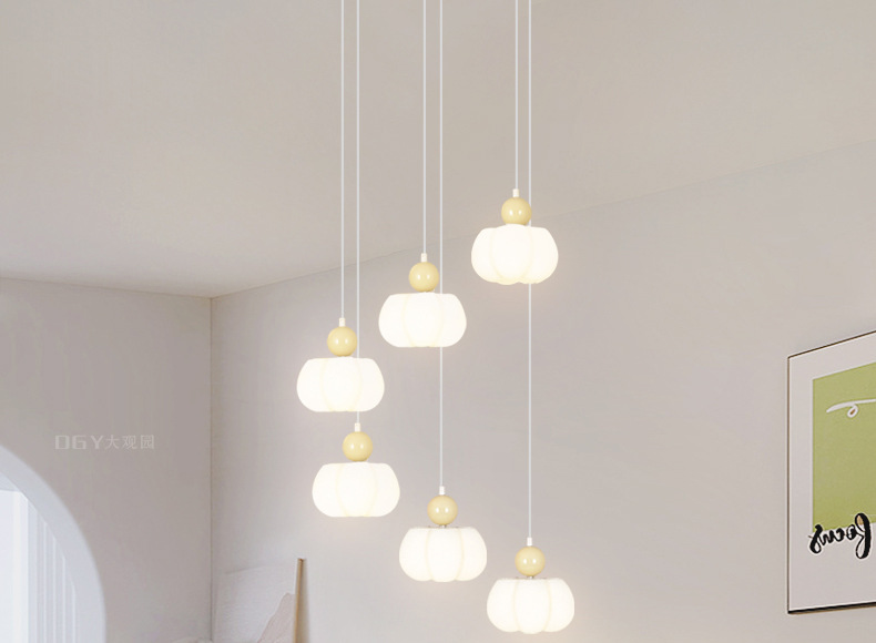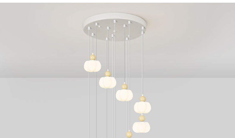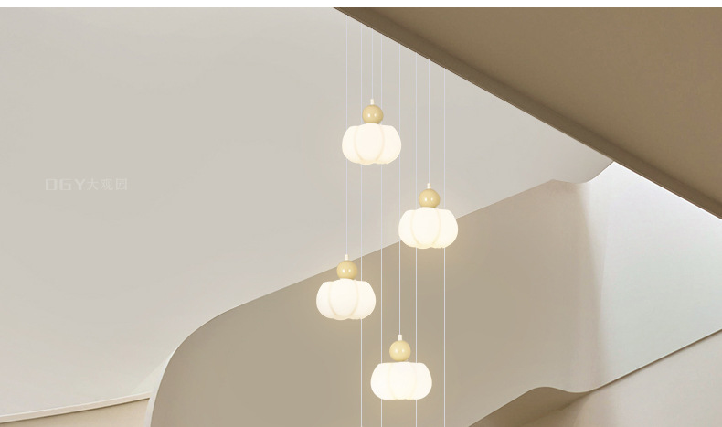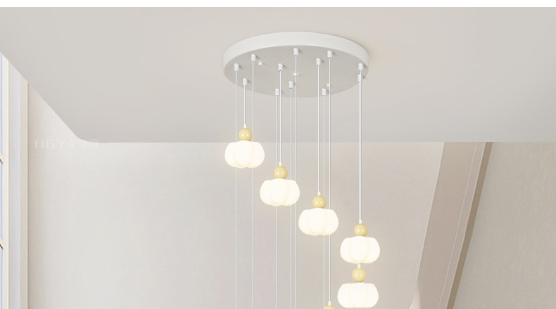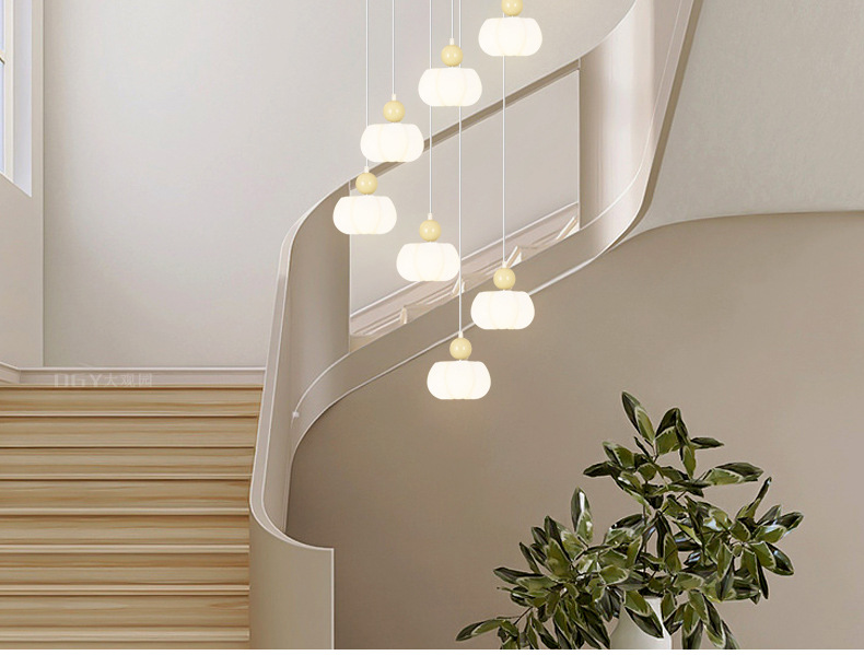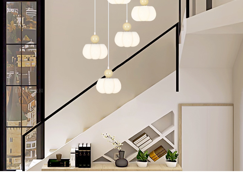 レストランシャンデリア クリーム系 クリエイティブ パンプキン ダイニングルーム テーブル照明器具 北欧風 ヴィラ ダブルフロア階段 ロングシャンデリア L271