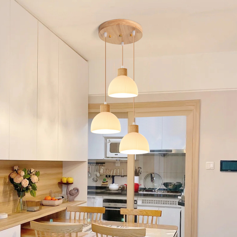 クリーム系レストラン吊り下げ照明 和風木製風 ダイニングテーブルランプ 中世侘び寂び風 ホテル風ダイニングバー吊り下げ照明 412L