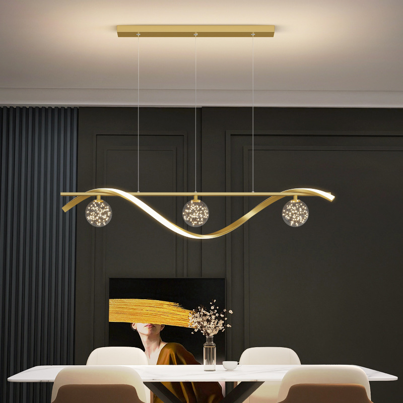 大観園レストランシャンデリア モダンシンプルレストランランプ 軽奢な星型ロングテーブルダイニングルームバーテーブルランプ 440L