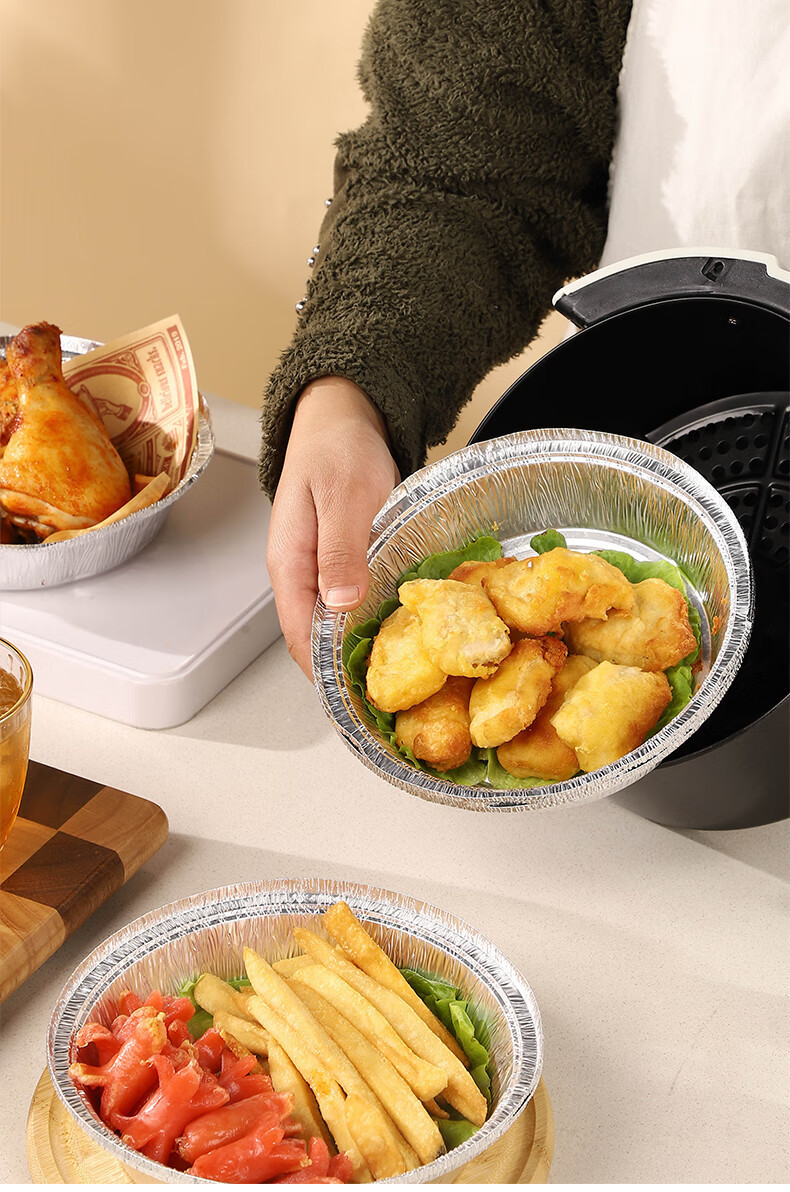 家庭用円形錫紙箱エアフライヤー専用厚手錫紙皿使い捨て焙煎トレイアルミ箔箱錫紙